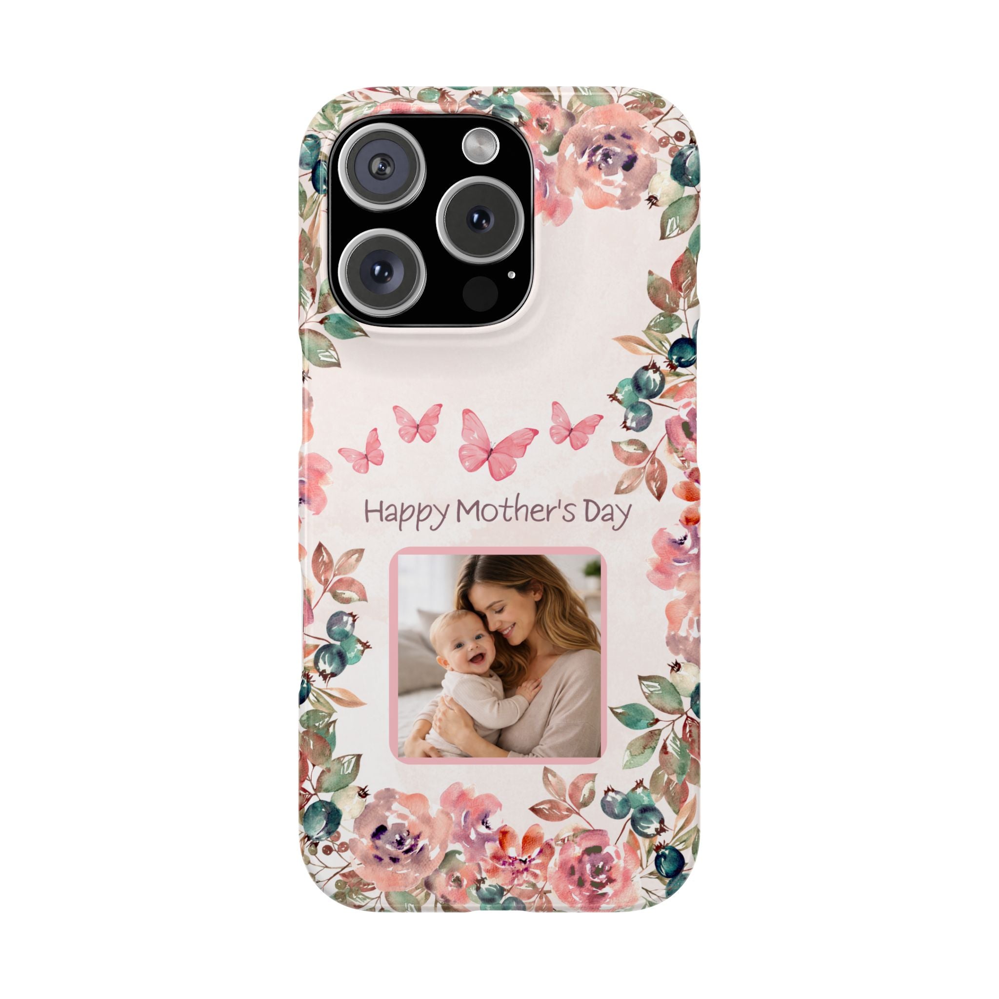 Personalised Mothers Day iPhone Case - Custom Pink Floral Photo Cover