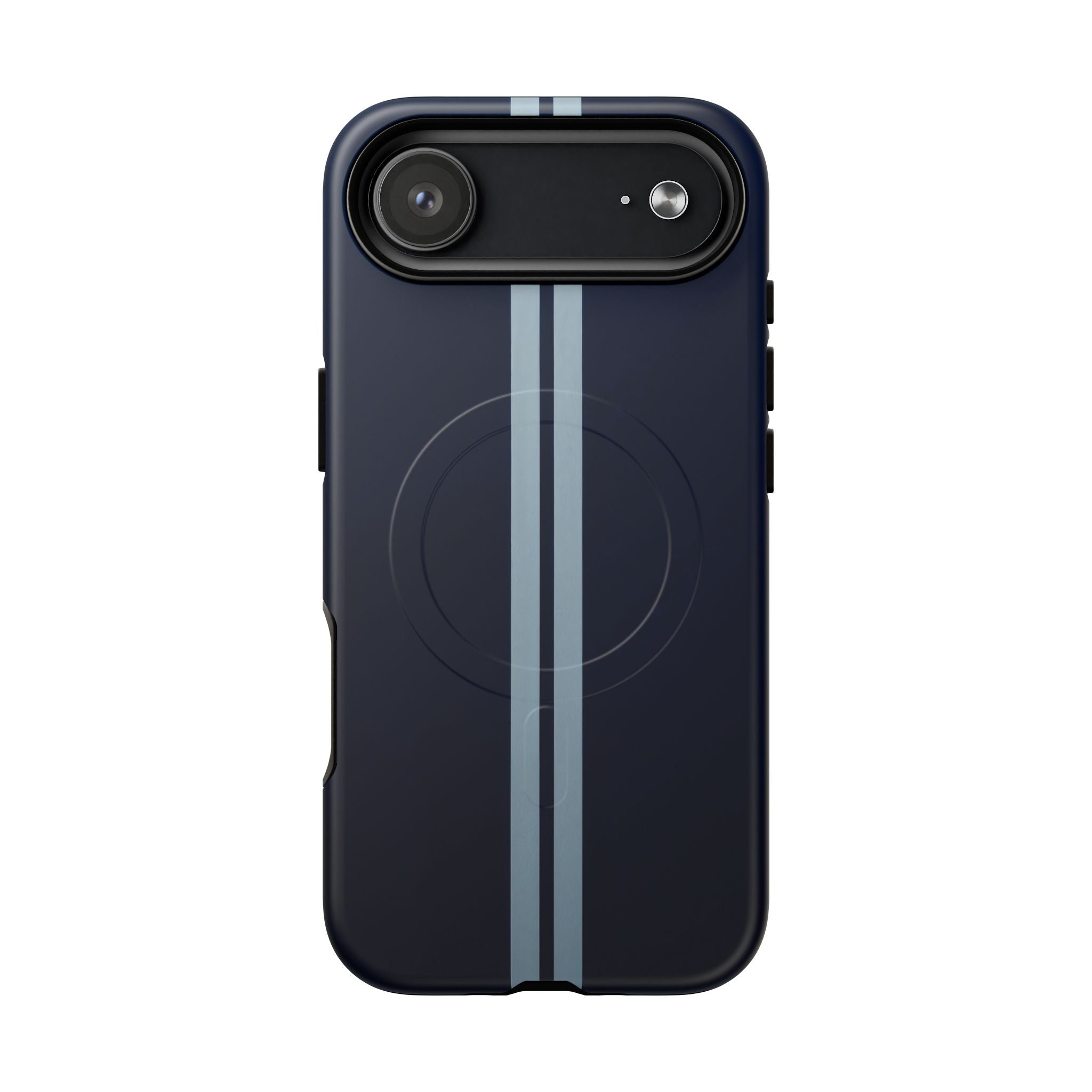 Navy Racing Stripe Matte iPhone Case - Dual Stripe Sport Design, Shockproof MagSafe® Compatible