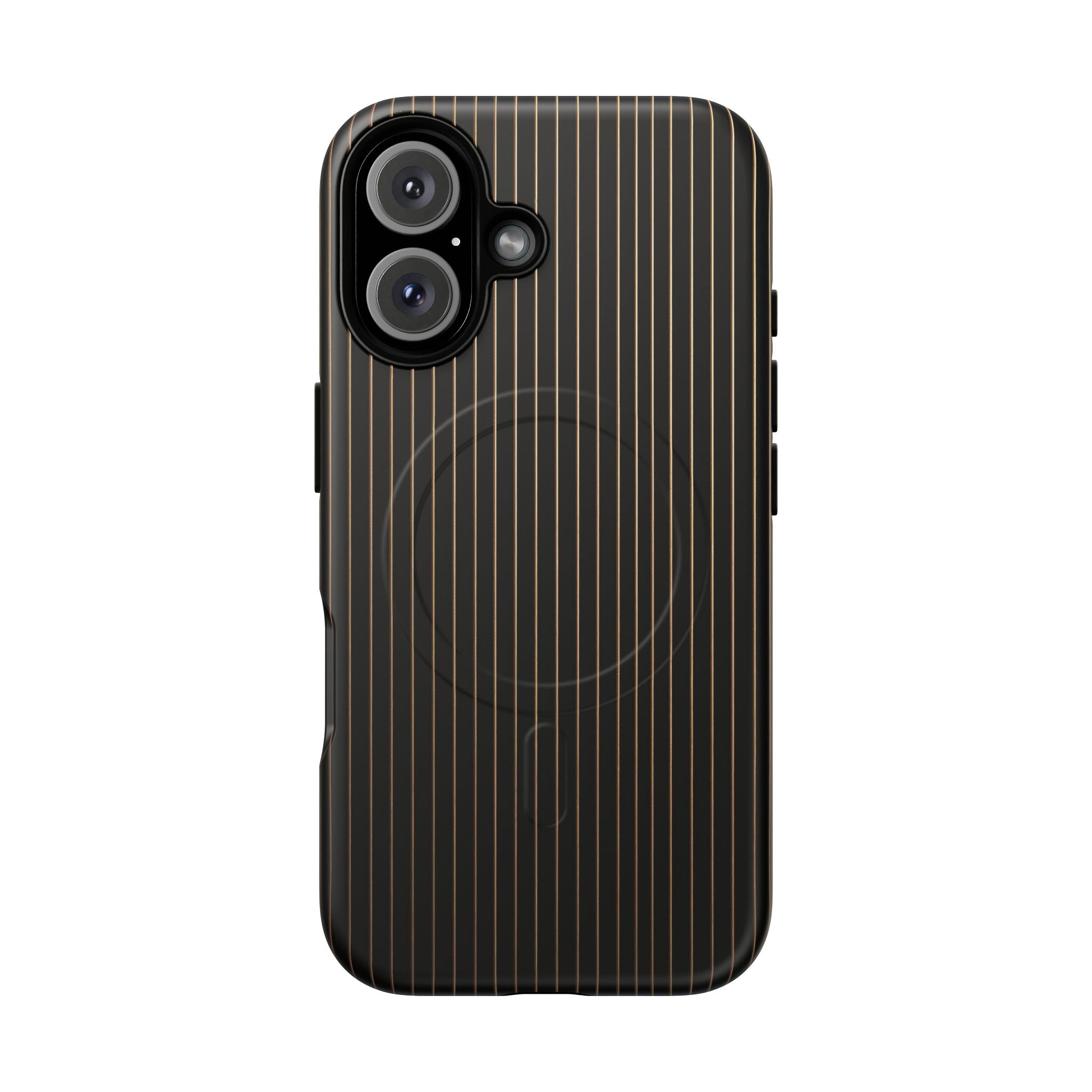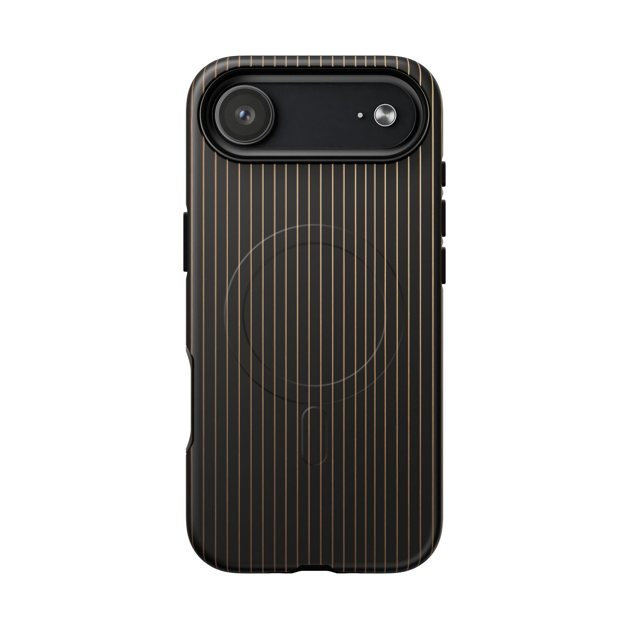 Black & Gold Pinstripe Matte iPhone Case - Luxury Shockproof MagSafe® Compatible Cover