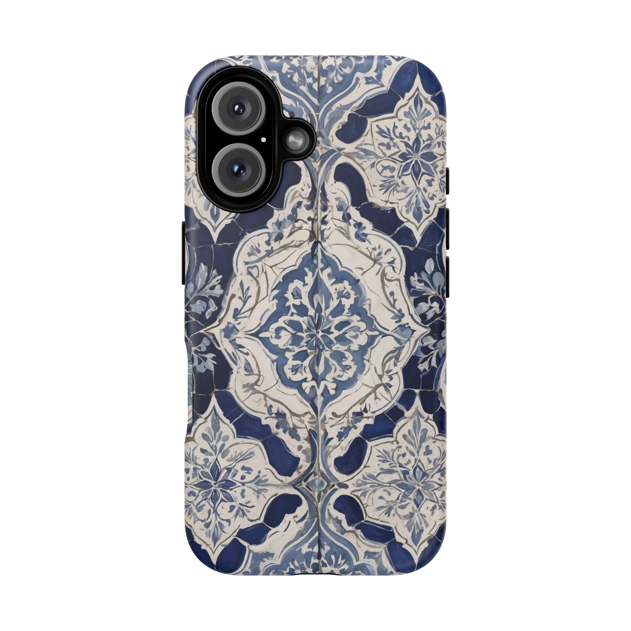 Mediterranean Tile iPhone Case – Blue & White, Shockproof MagSafe® Compatible