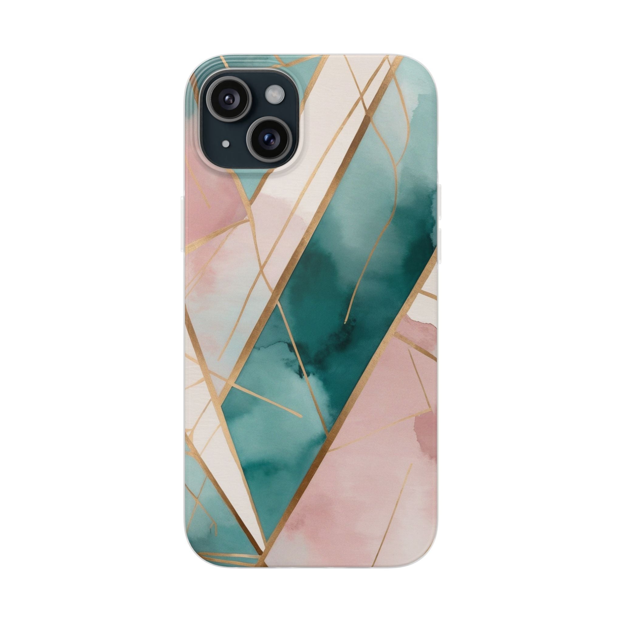 Watercolour Wash & Geometric Gold Lines Phone Case - Pink, Teal & Cream