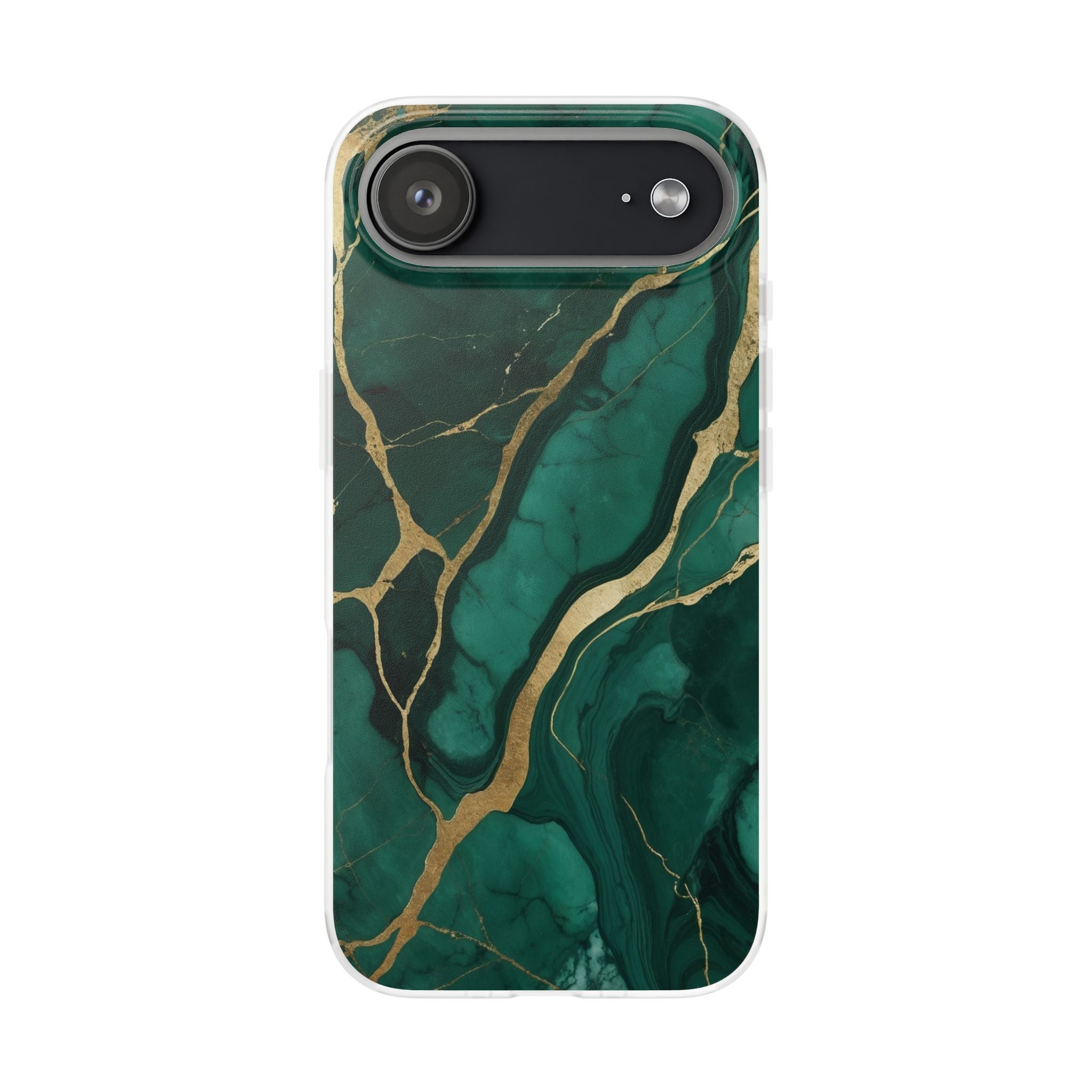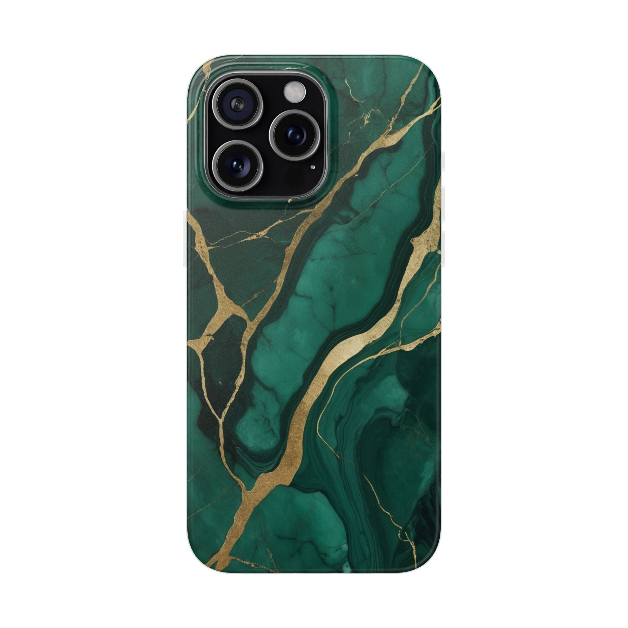 Transform your phone into a statement accessory with our Green Marble & Gold Vein Phone Case, featuring a rich emerald...