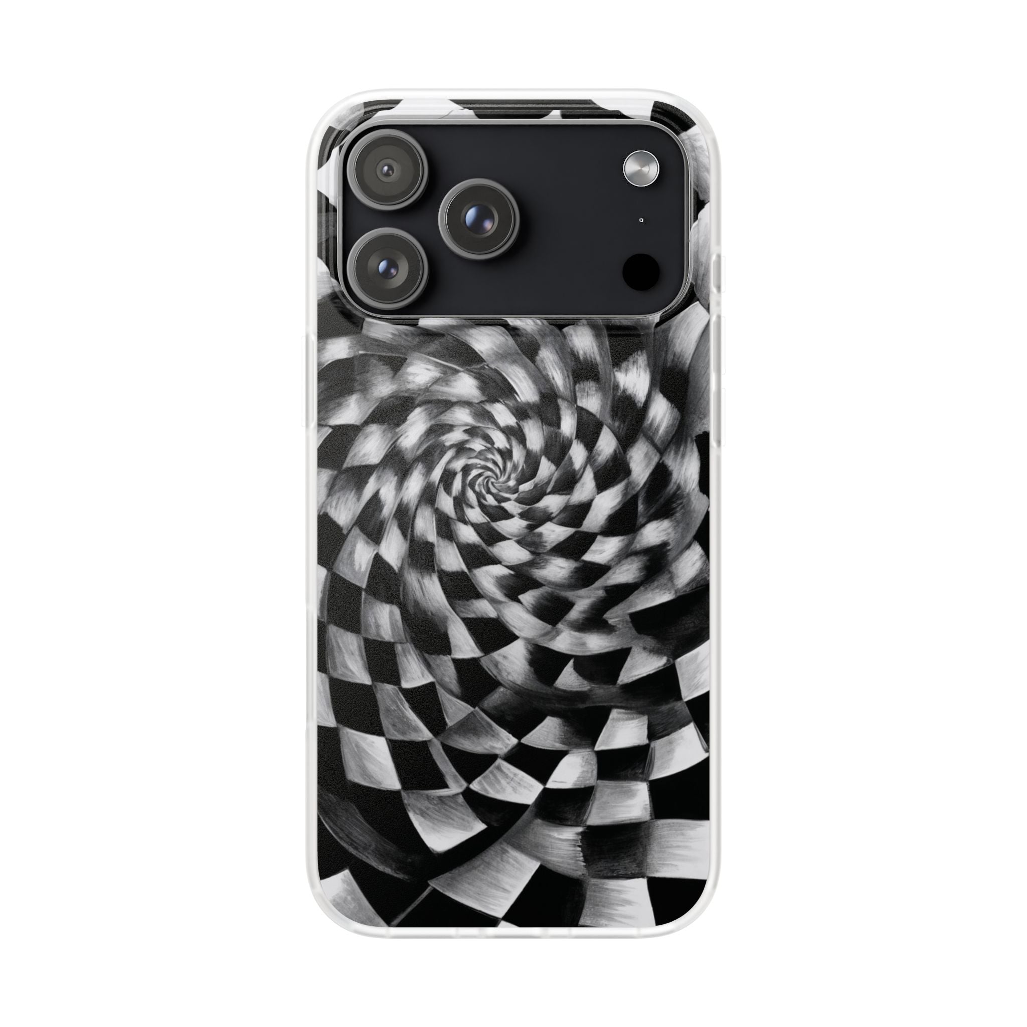 Turn your phone into a visual statement piece with our Checkerboard Spiral Illusion Phone Case, featuring a hypnotic spiral pattern...