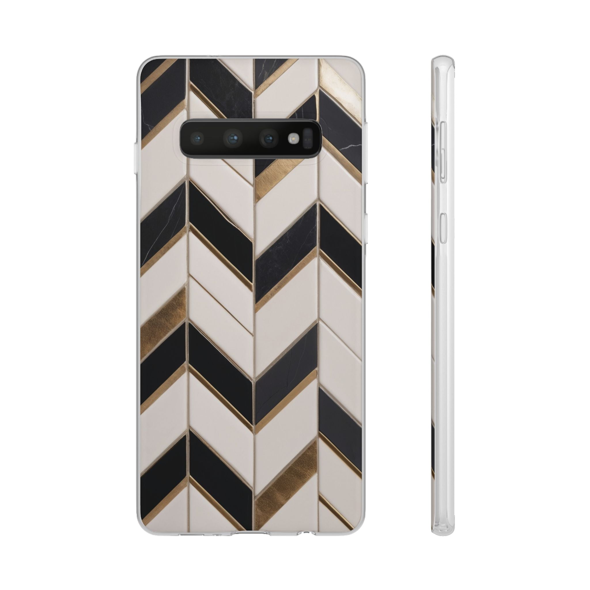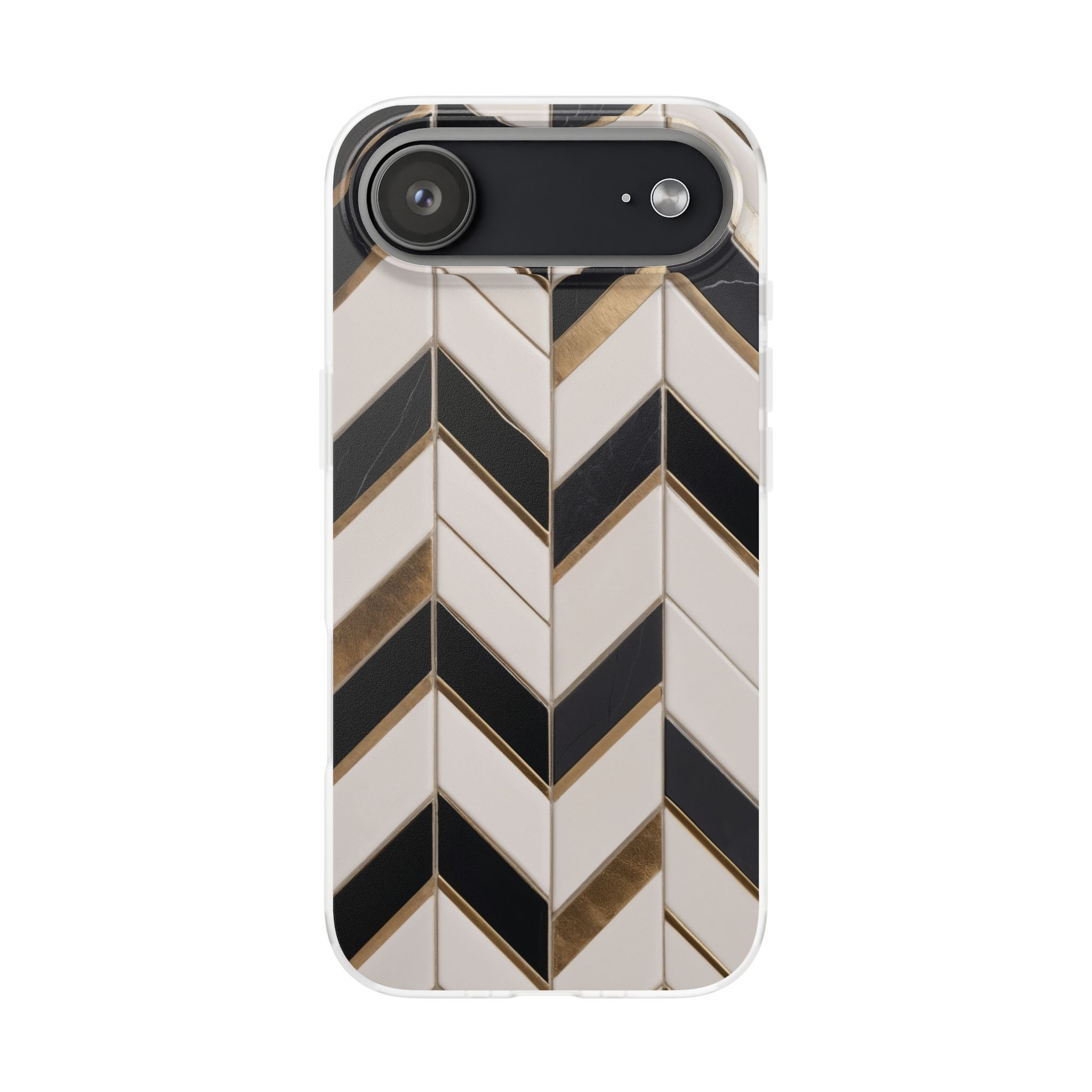 Herringbone Tile Pattern Phone Case - Cream & Charcoal with Gold Inlay