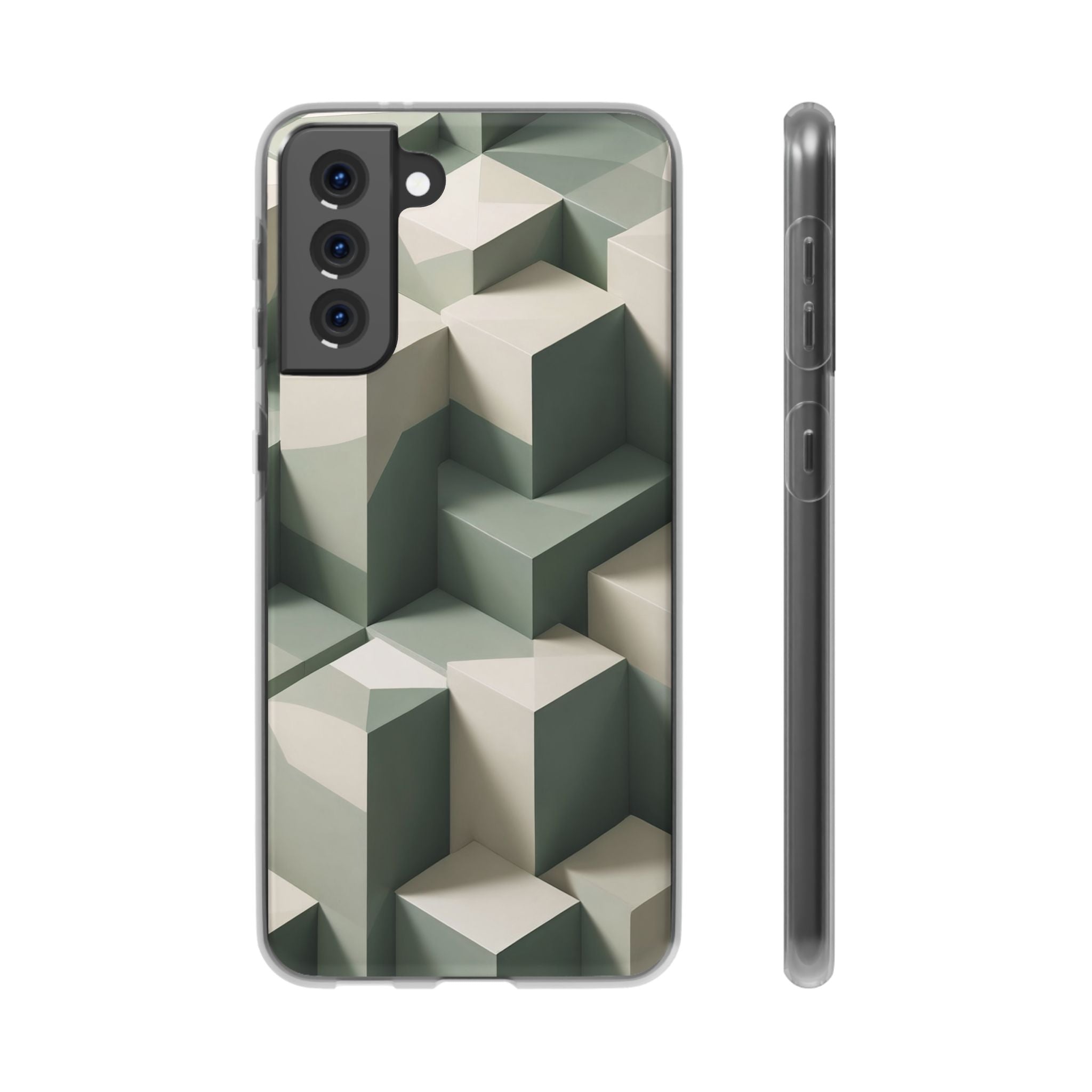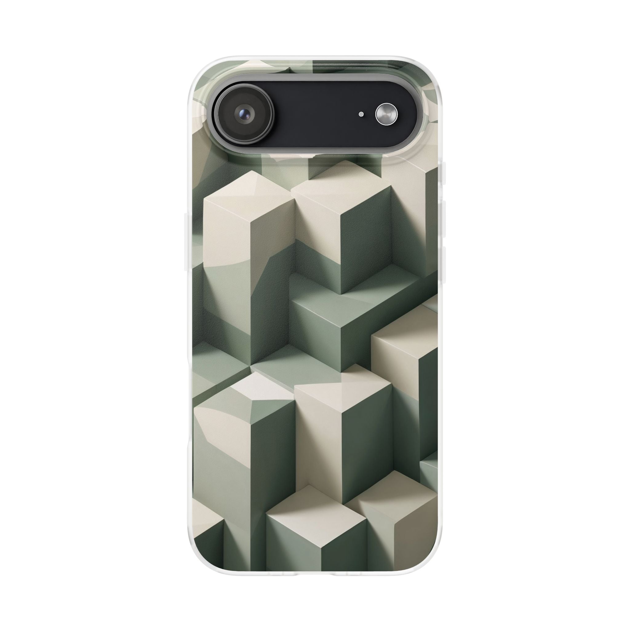 Minimal Isometric Cube Pattern Phone Case – Sage, Ivory & Grey 3D Effect