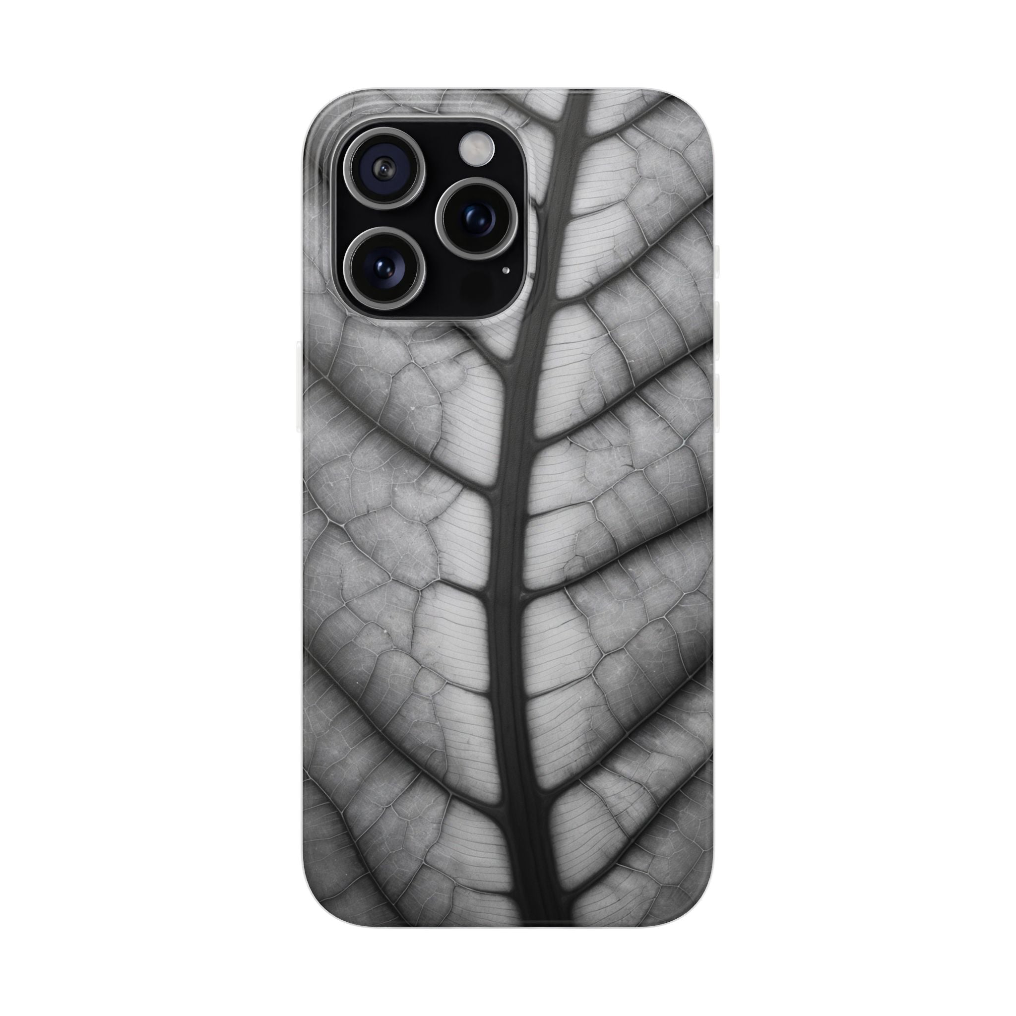 Macro Leaf Vein Pattern Phone Case - Elegant Monochrome Nature Design