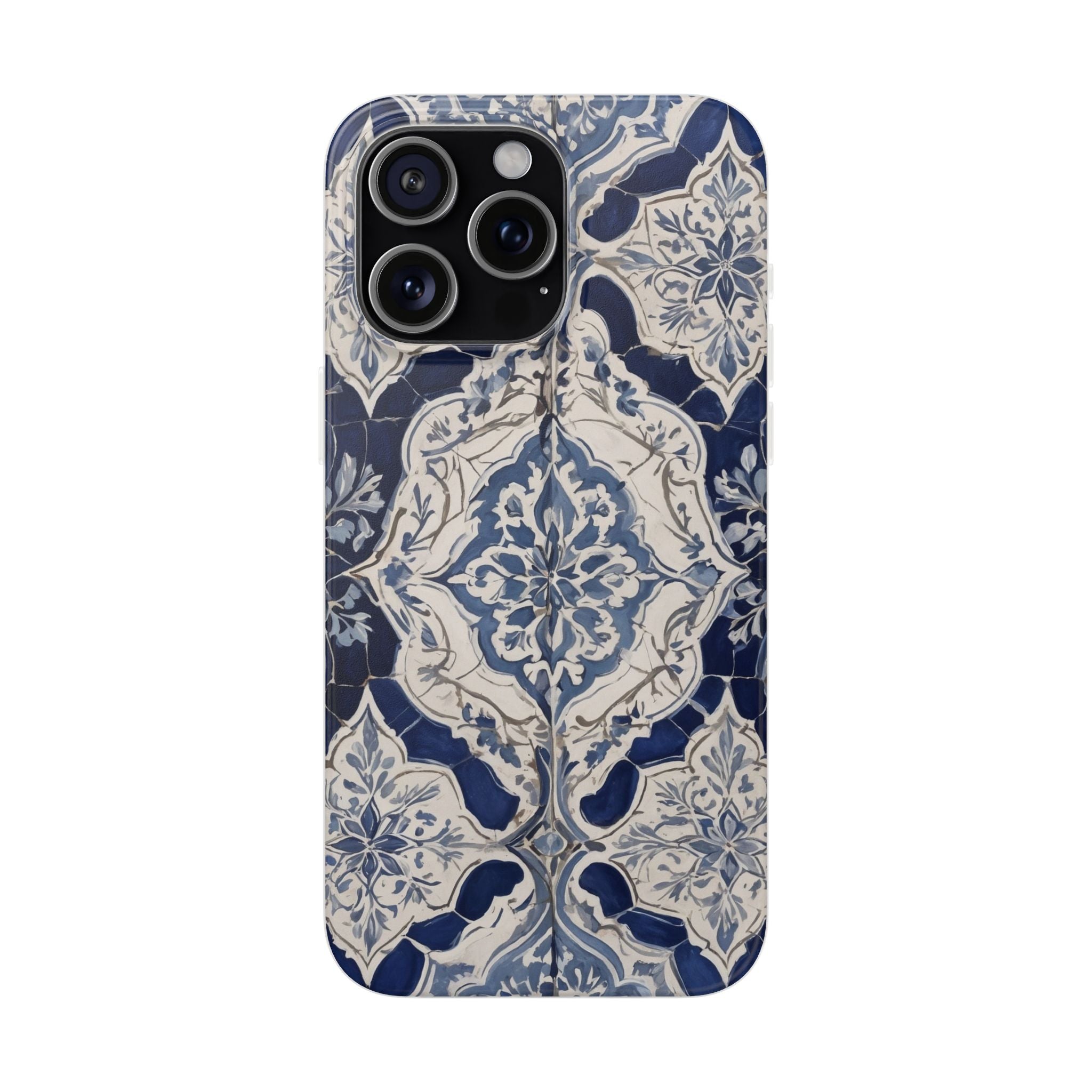 Blue & White Moroccan Tile Phone Case - Mediterranean Pattern Style