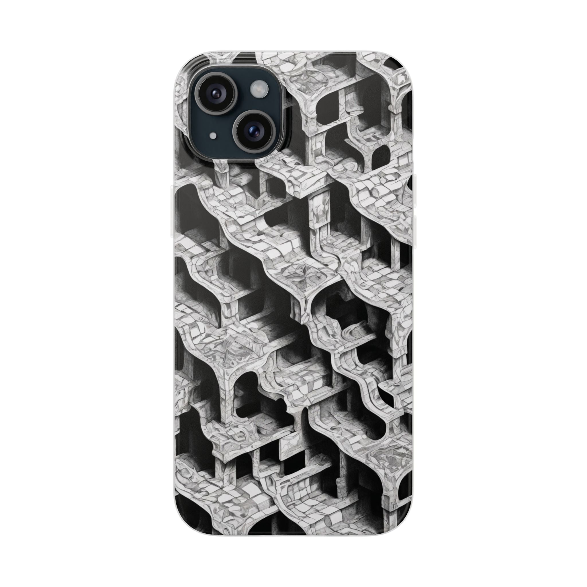 Escher-Style Tessellation Phone Case - Black & White Geometric Illusion