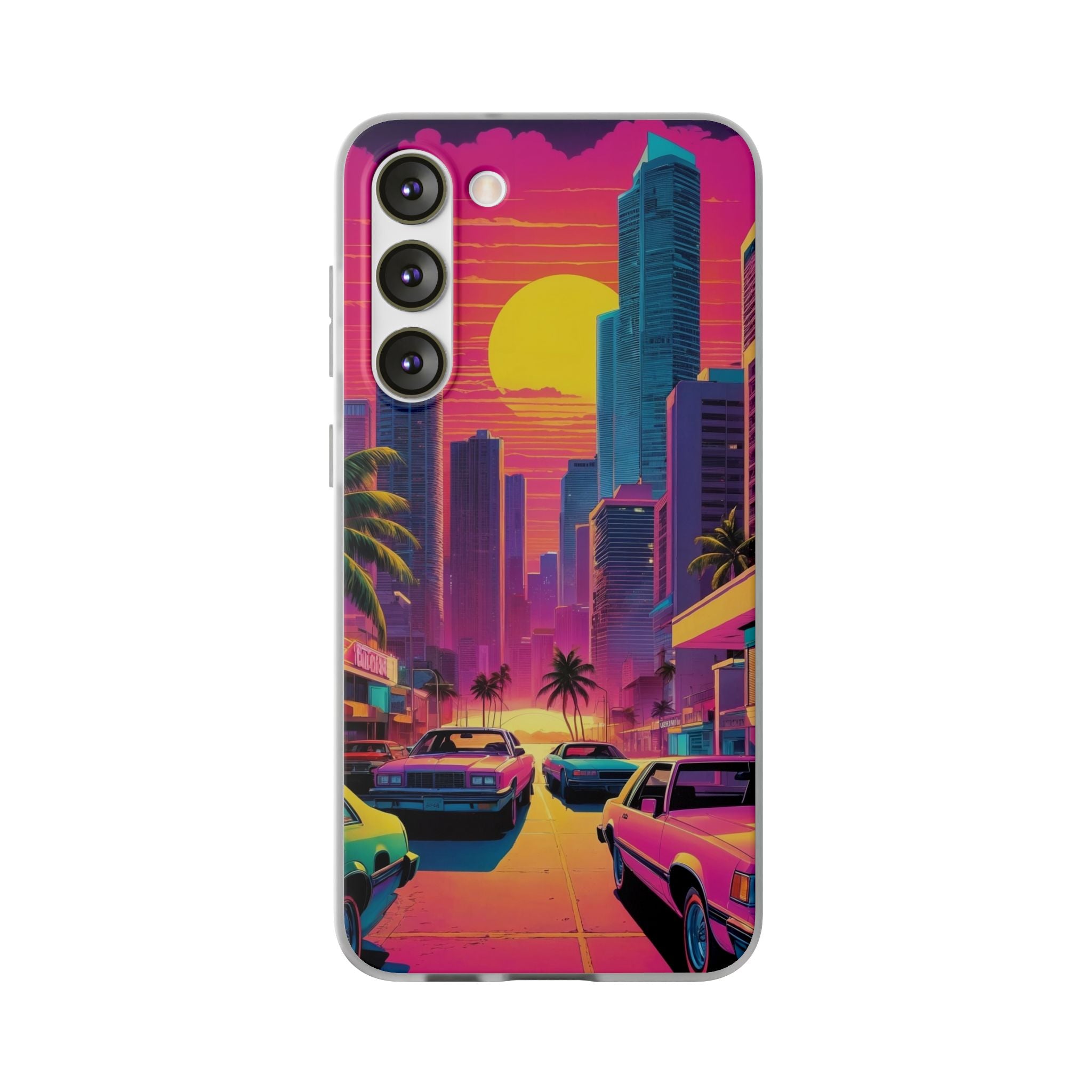Turn up the nostalgia with our Neon Sunset & Palms phone case, a striking tribute to 80s synthwave style. Featuring...