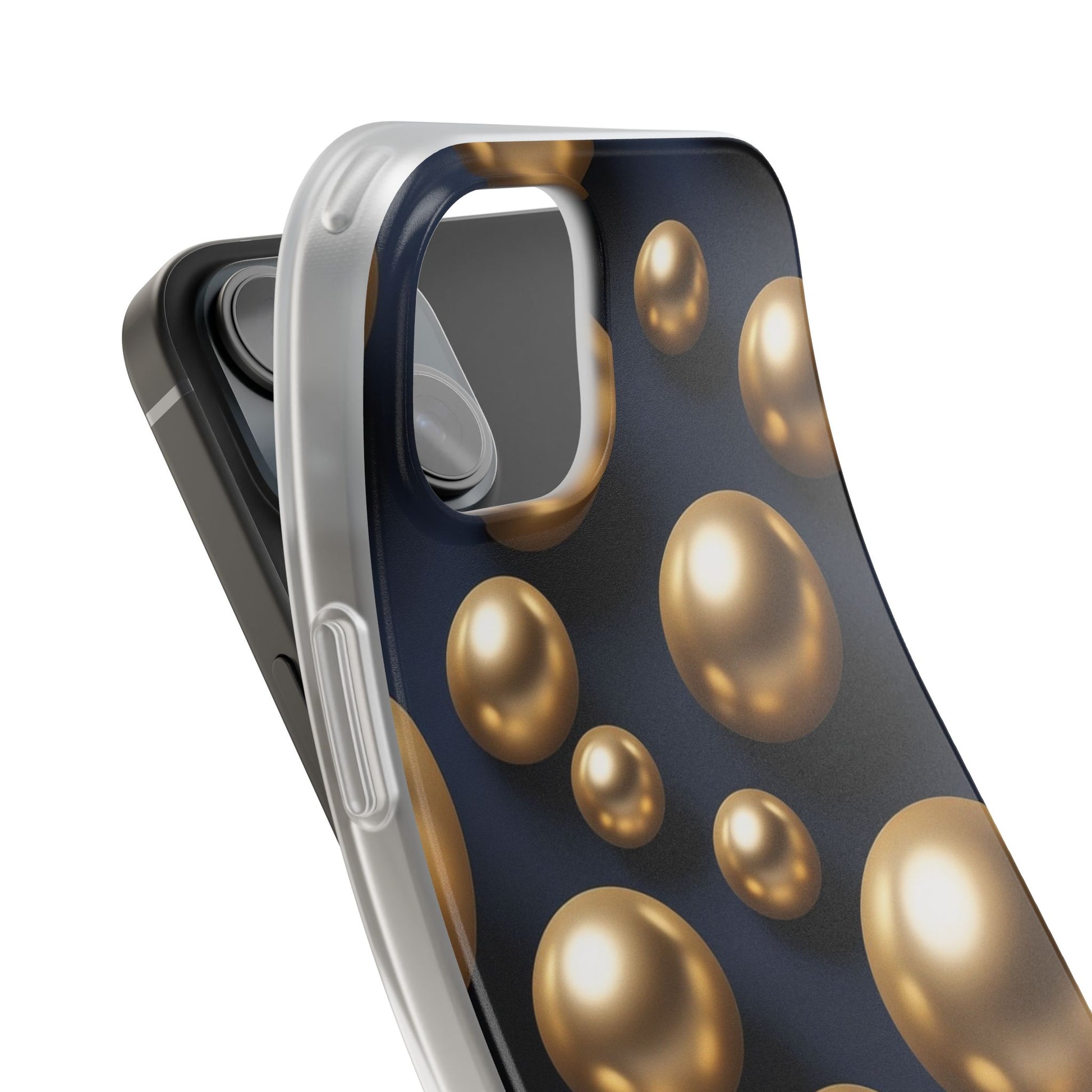 Add a touch of modern glamour to your device with our 3D Metallic Gold Spheres Phone Case, featuring a striking arrangement of gleaming gold spheres set against a deep matte navy backdrop. The realistic 3D shading creates depth and dimension, giving your phone a bold, high-end aesthetic.