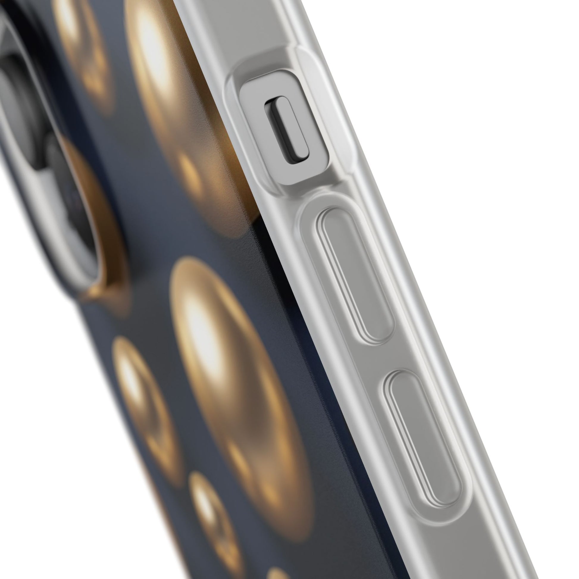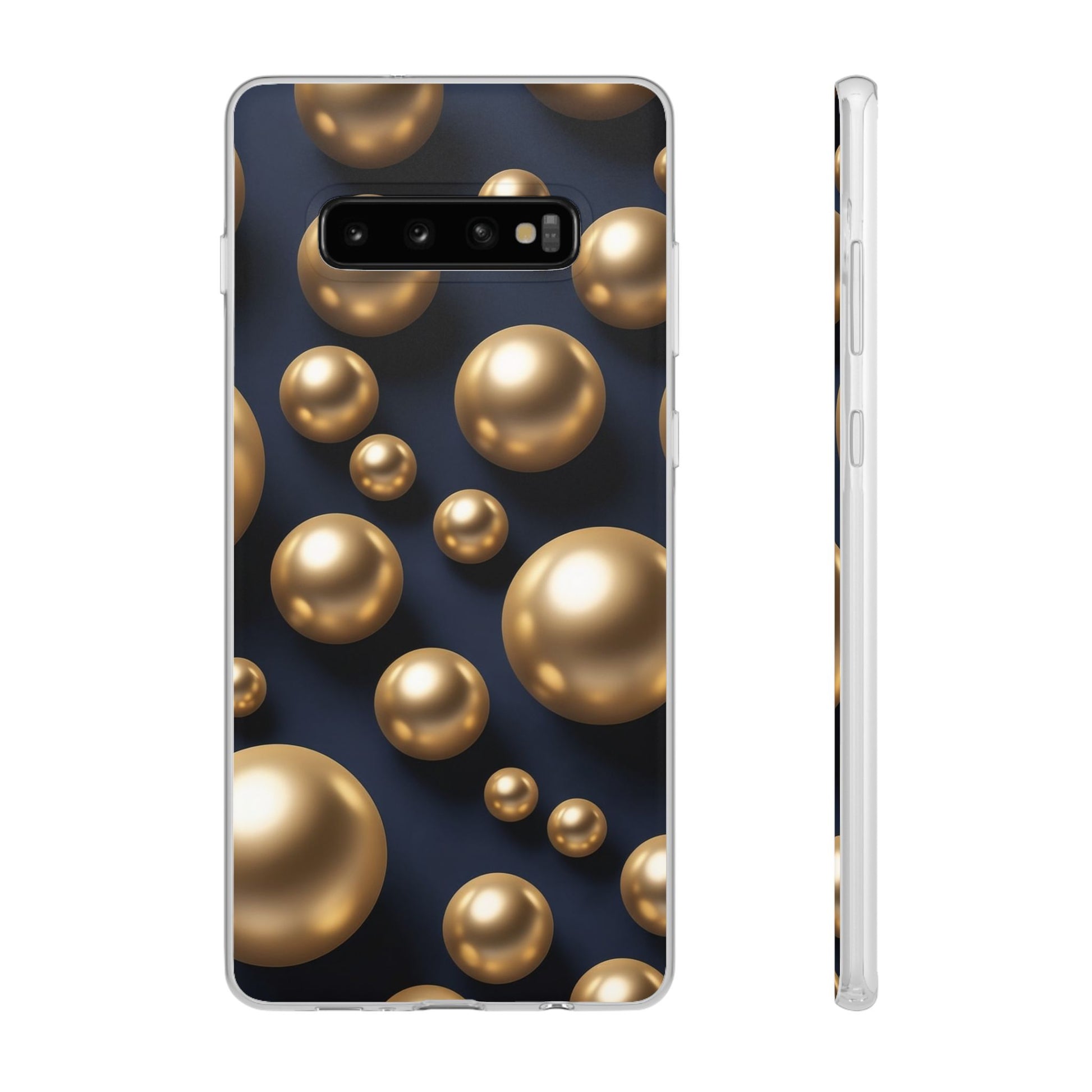 Add a touch of modern glamour to your device with our 3D Metallic Gold Spheres Phone Case, featuring a striking arrangement of gleaming gold spheres set against a deep matte navy backdrop. The realistic 3D shading creates depth and dimension, giving your phone a bold, high-end aesthetic.