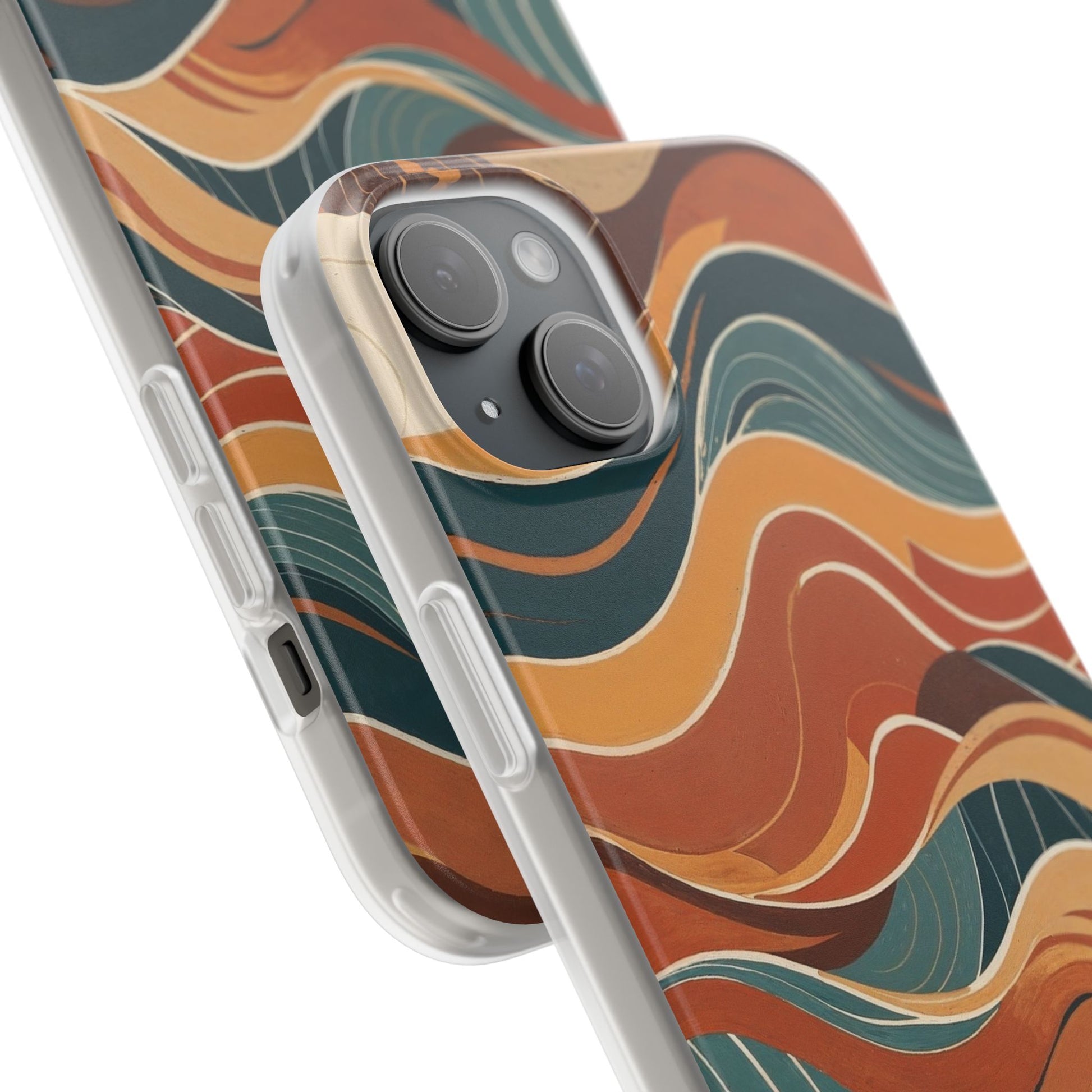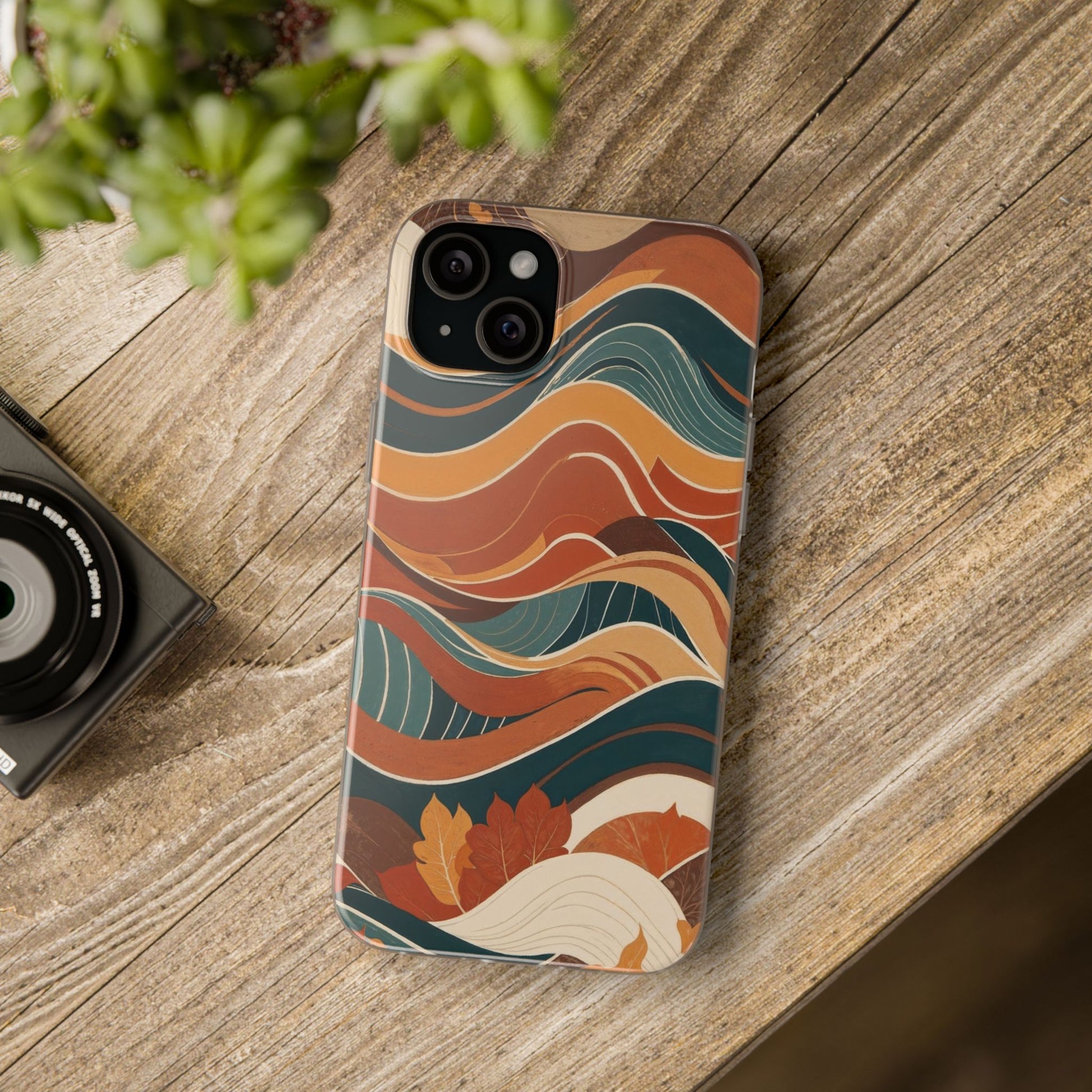 Celebrate the rhythm of the season with the Autumn Waves Abstract case. Featuring flowing waves of rust, mustard, teal, and cream, accented with falling autumn leaves, this design blends earthy tones with modern artistry. Inspired by the movement of wind and water, it captures the essence of autumn in a bold, stylish form that feels both natural and contemporary.