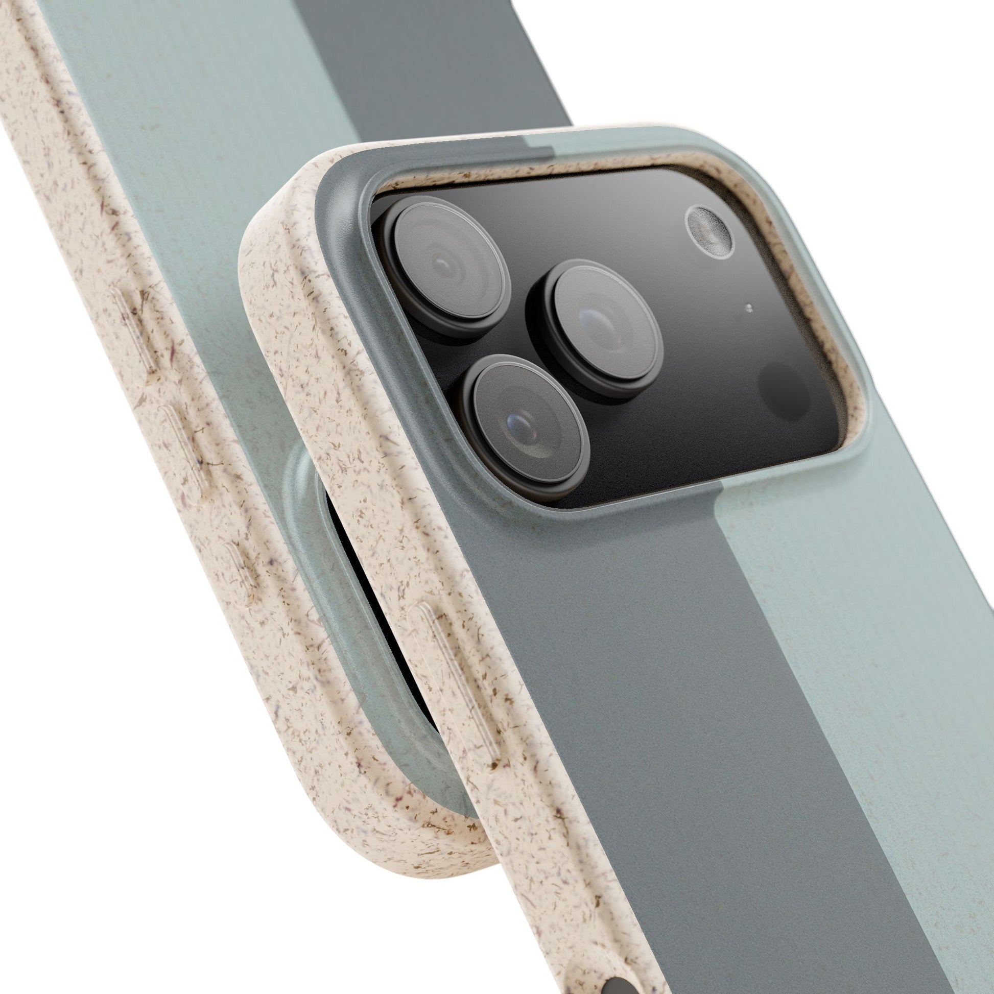 Arctic Line is an eco-friendly iPhone case inspired by Nordic minimalism and the quiet contrast of northern light. Cool grey and soft ice-blue are divided by a clean vertical line, creating a calm, architectural design that feels precise, balanced and timeless.