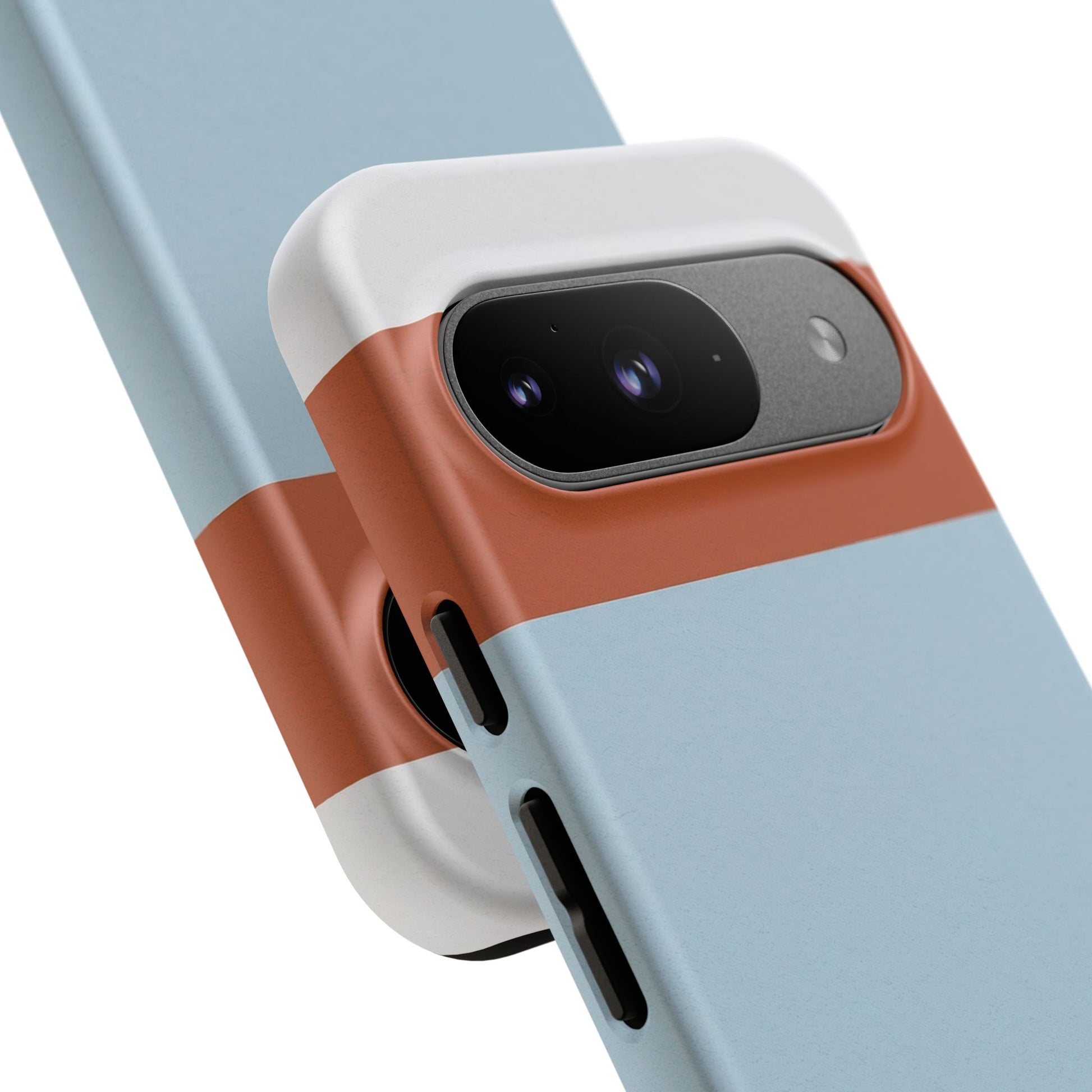 Bring calm, clean coastal tones to your Google Pixel with the Coastal Block case - a refined three-tone design featuring warm terracotta, soft sky blue, and deep ocean blue. Its balanced colour blocking creates a modern, minimalist look inspired by beach horizons and coastal architecture.