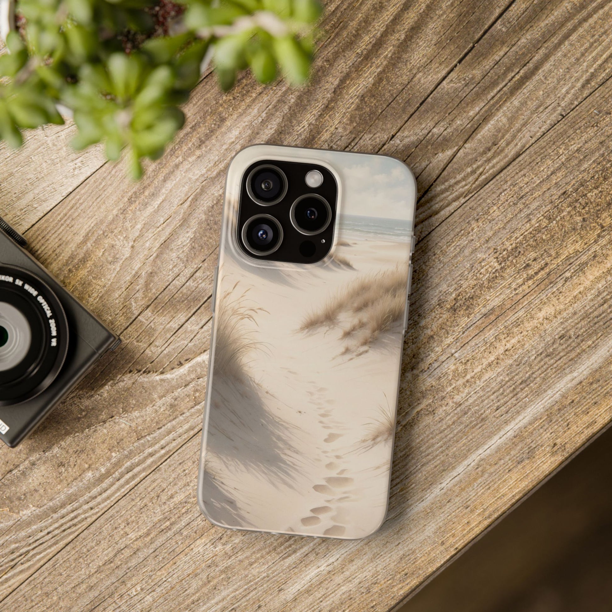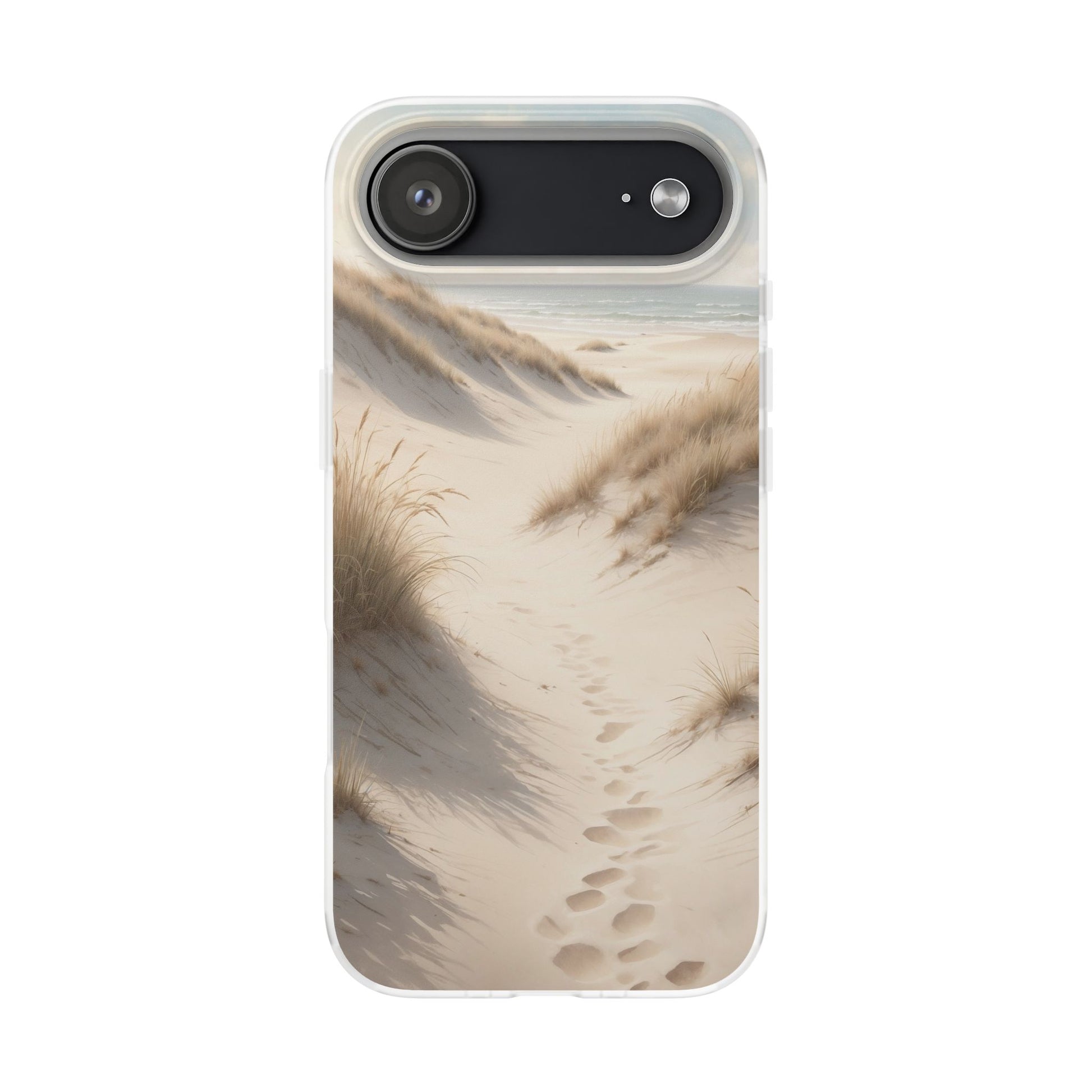 Step into serenity with the Coastal Pathway phone case, a calming tribute to quiet beaches and sunlit dune trails. This peaceful design features soft, windswept sand, gentle footprints, and golden grasses leading toward a shimmering horizon. With muted tones of beige, cream, and sky blue, it captures the stillness of nature and the beauty of simple moments.