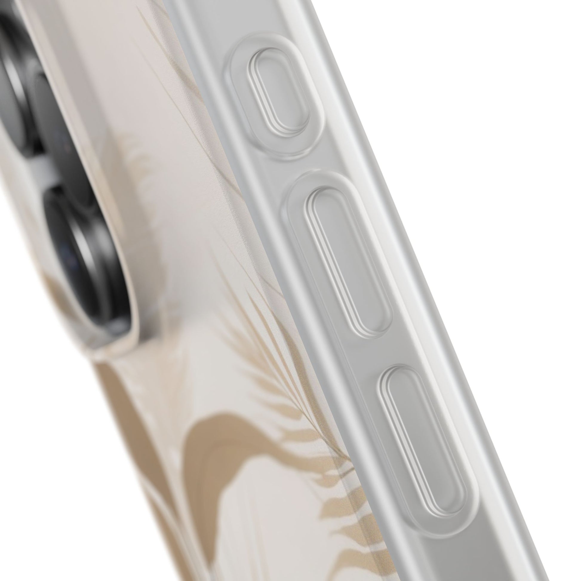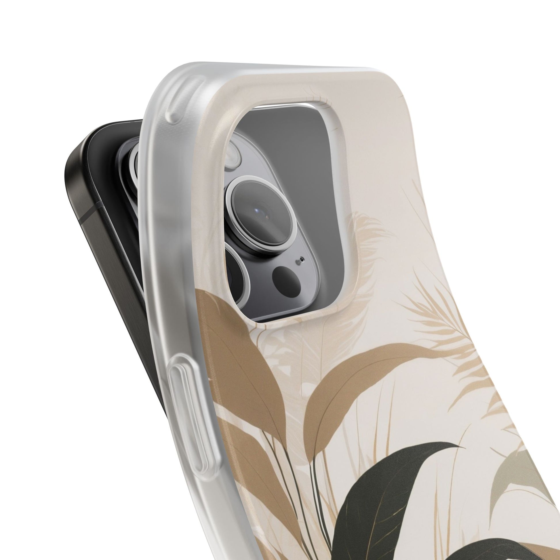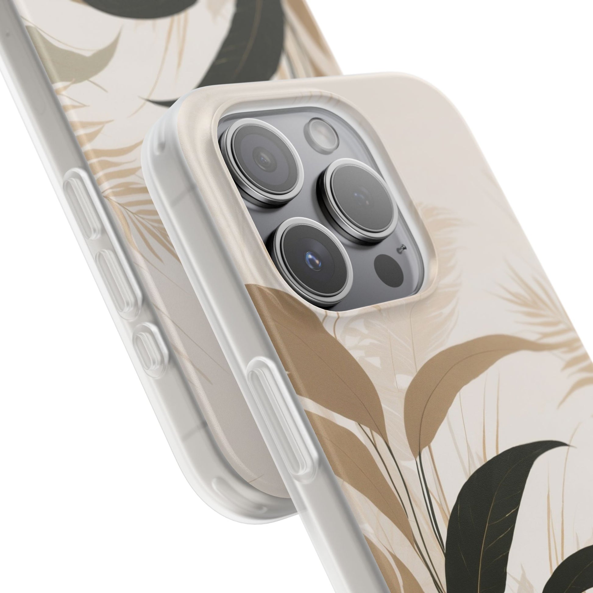 Embrace quiet luxury with our Desert Leaves Elegance phone case, a graceful arrangement of tropical foliage in muted desert tones. Soft beiges, warm sands, and deep olive greens come together in a layered, minimalist composition inspired by modern interior design and high-end wallpaper aesthetics.