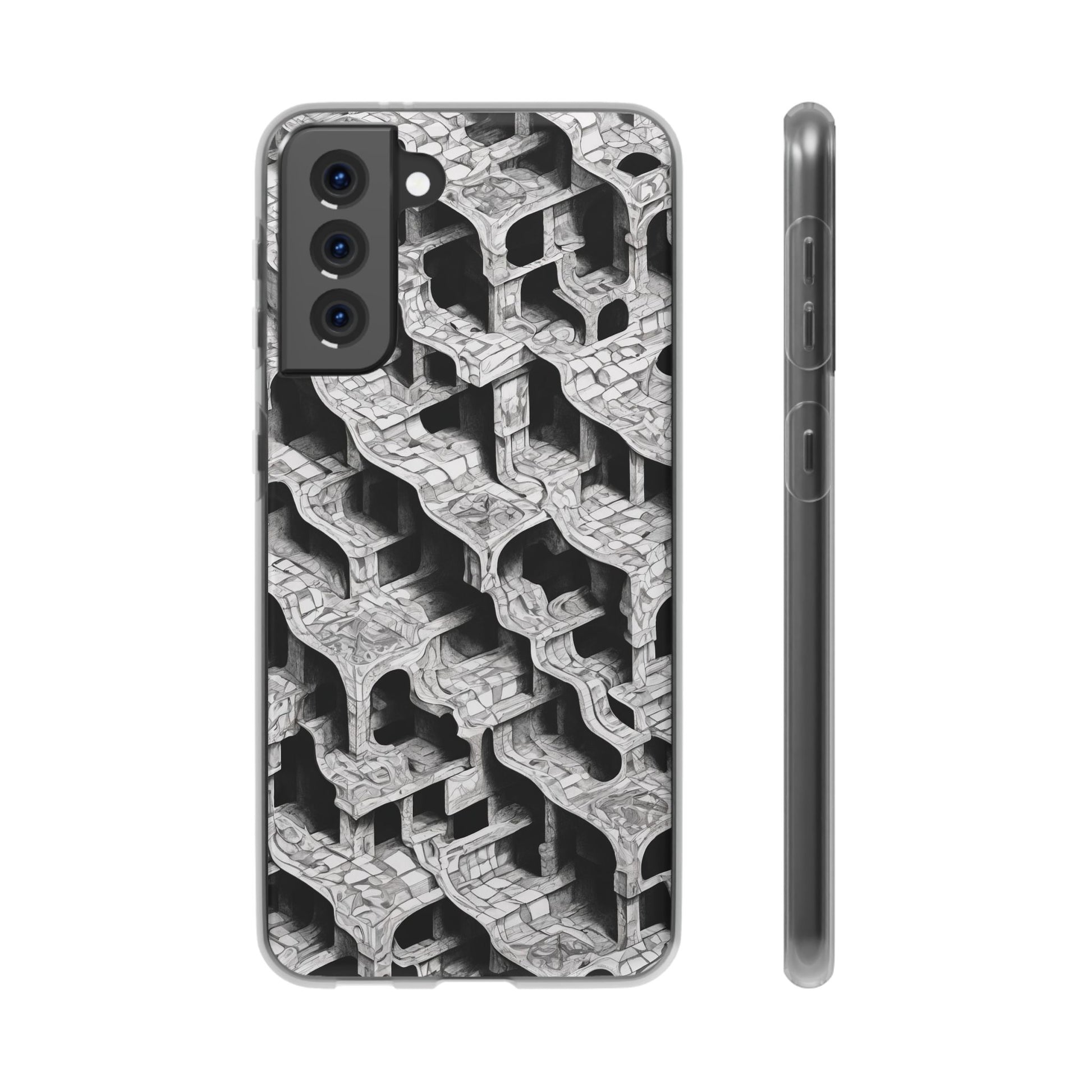 Escher-Style Tessellation Phone Case - Black & White Geometric Illusion