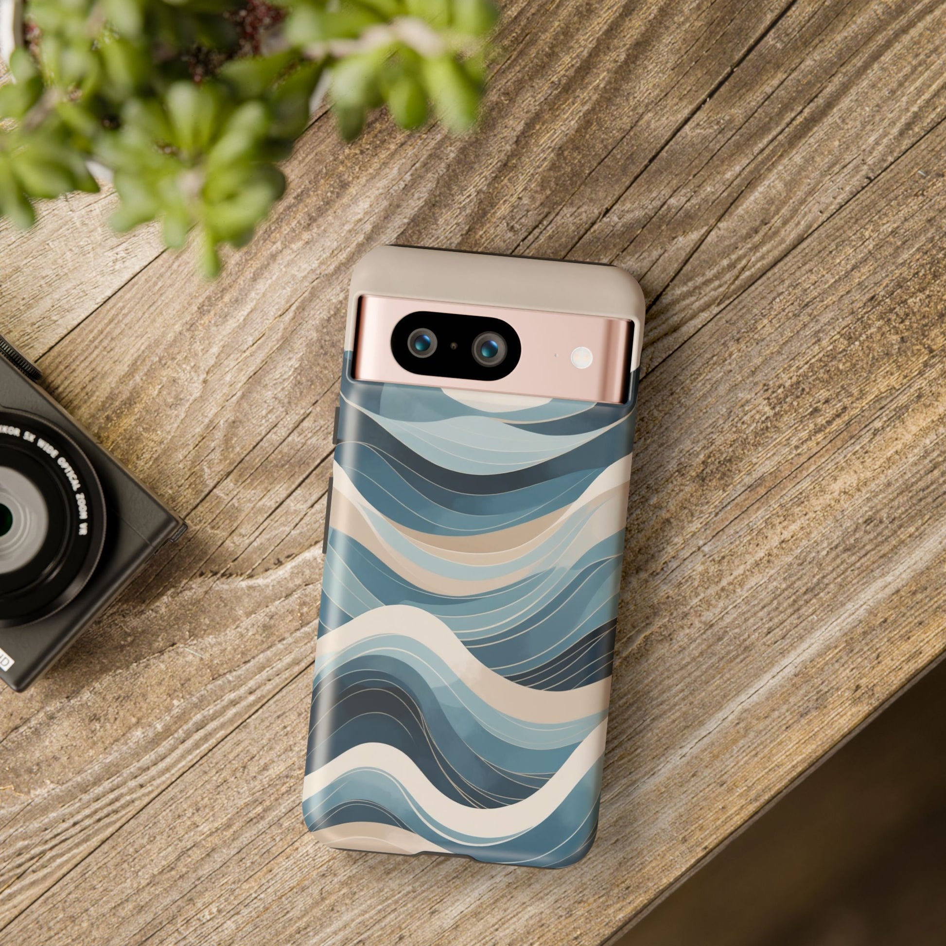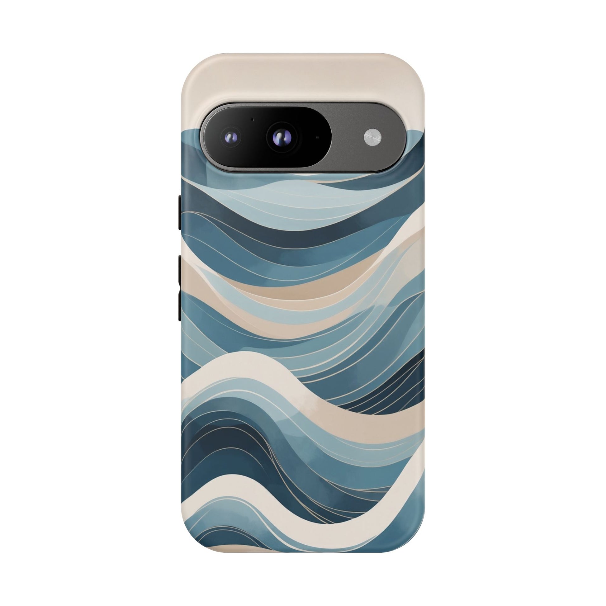 Calm, modern and effortlessly stylish, the Blue Ocean Waves Google Pixel case features a flowing abstract wave design inspired by layered ocean currents and coastal landscapes. Soft shades of blue, slate and sand move across the surface in gentle curves, creating a sense of depth and tranquillity that brings a refined, coastal feel to your everyday carry.