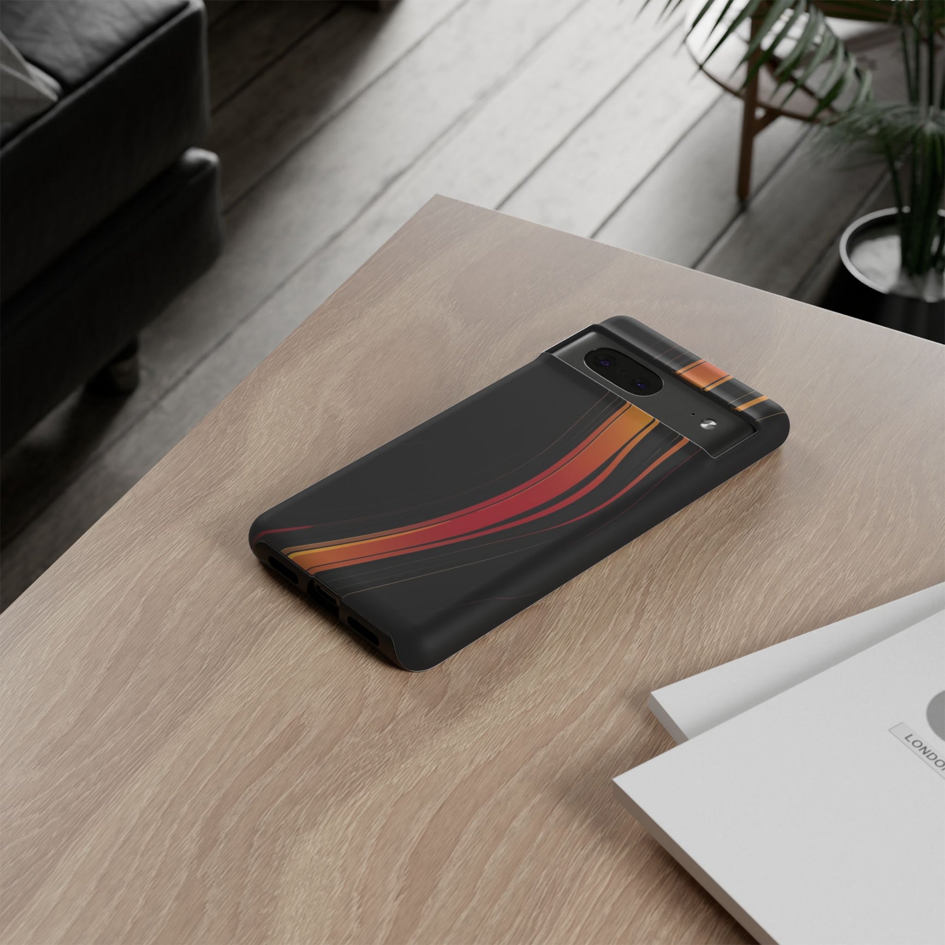 Google Pixel Case - Flame Streak Matte Design | Sleek Black Orange Gradient Phone Cover