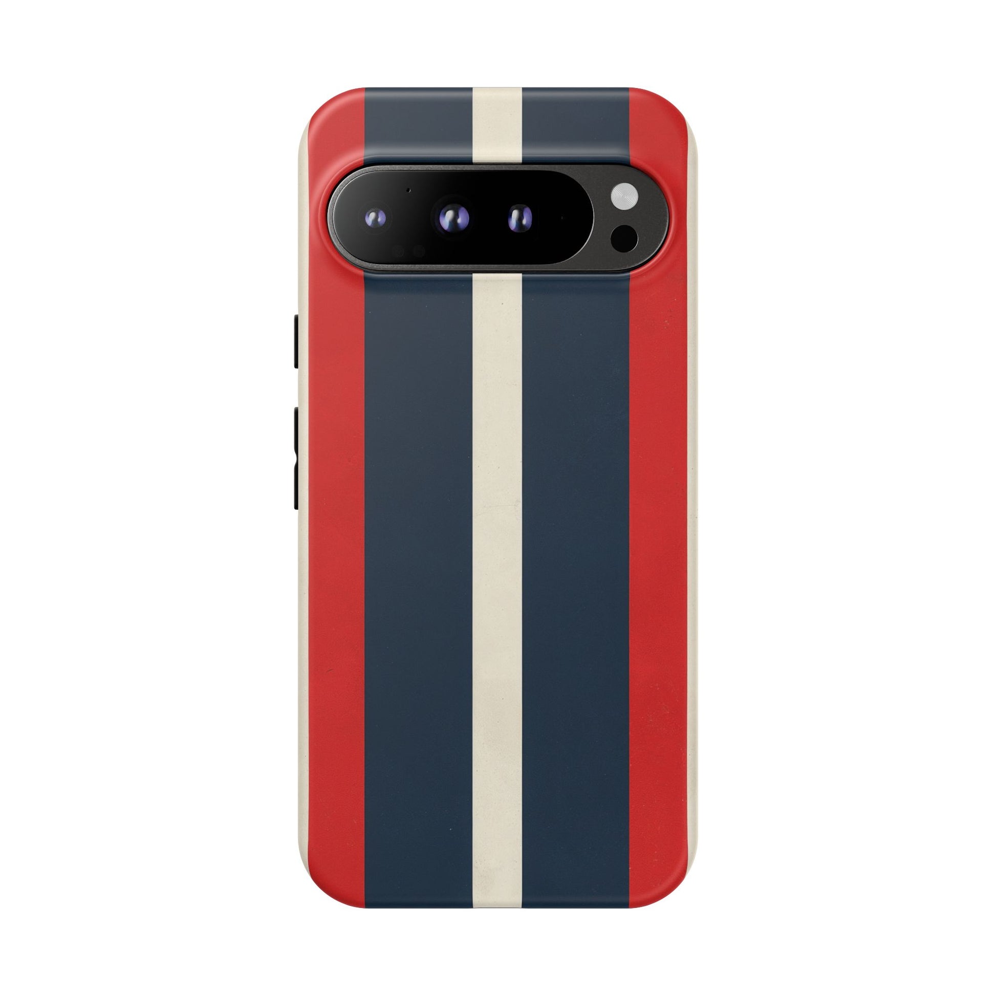 Bring vintage racing flair to your Google Pixel with the Retro Racing Monaco Stripe Case. The bold red, navy and cream design channels classic motorsport heritage while keeping your phone light, slim and stylish.