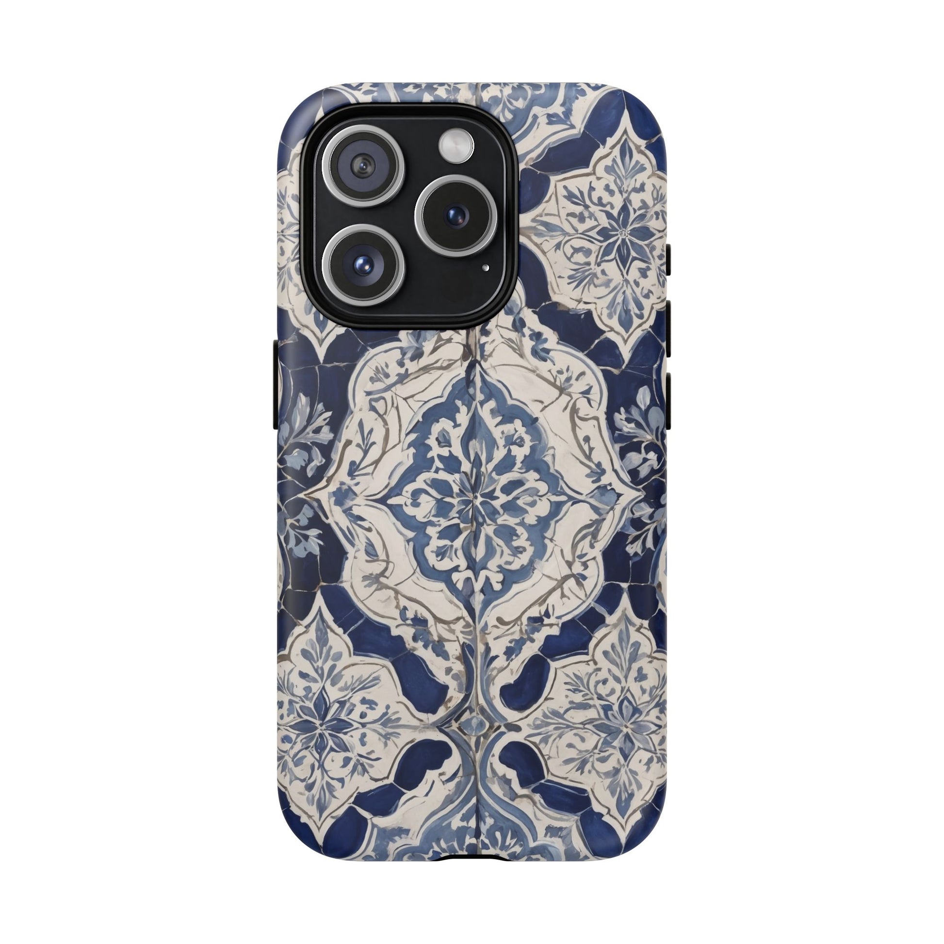 Mediterranean Tile iPhone Case – Blue & White, Shockproof MagSafe® Compatible