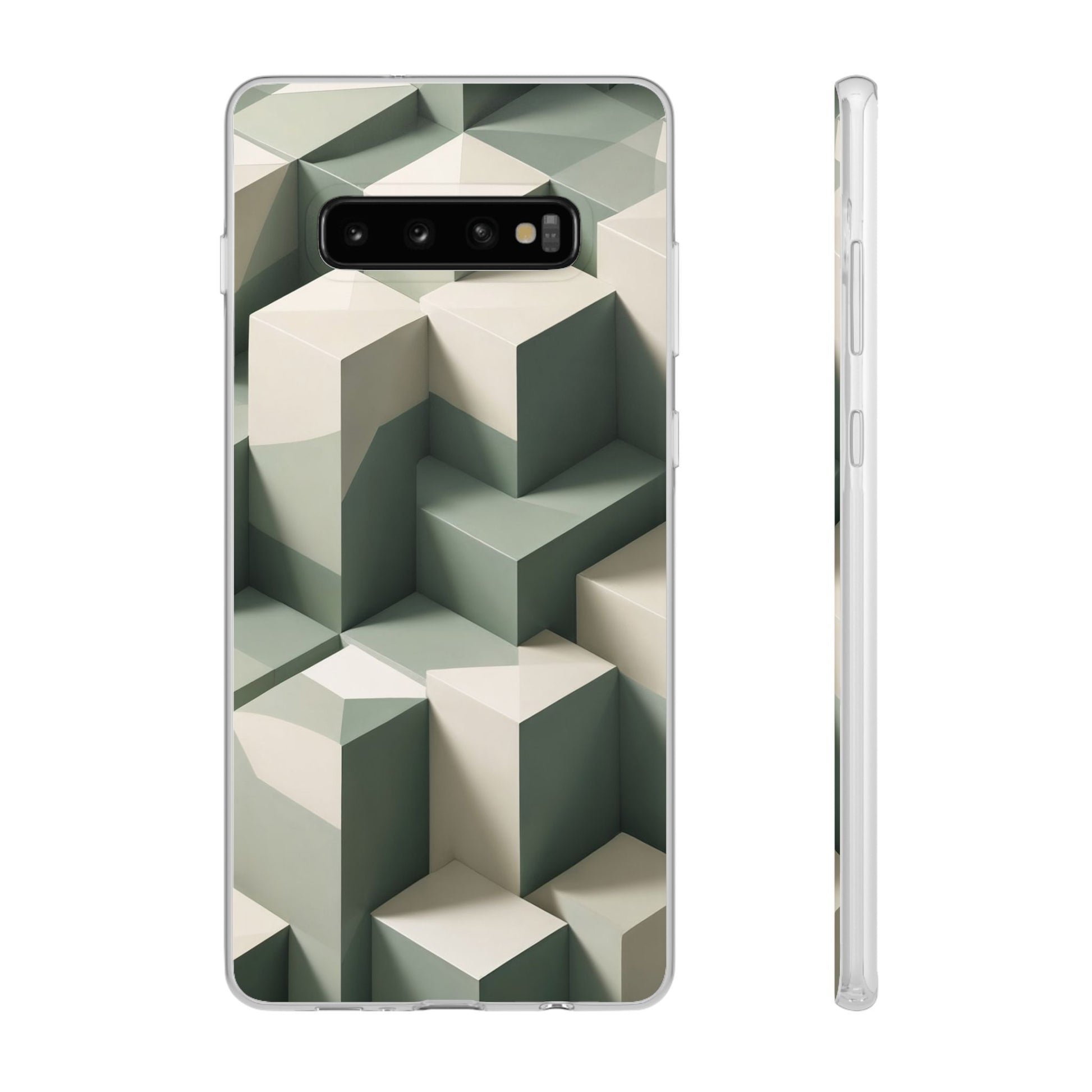 Minimal Isometric Cube Pattern Phone Case – Sage, Ivory & Grey 3D Effect