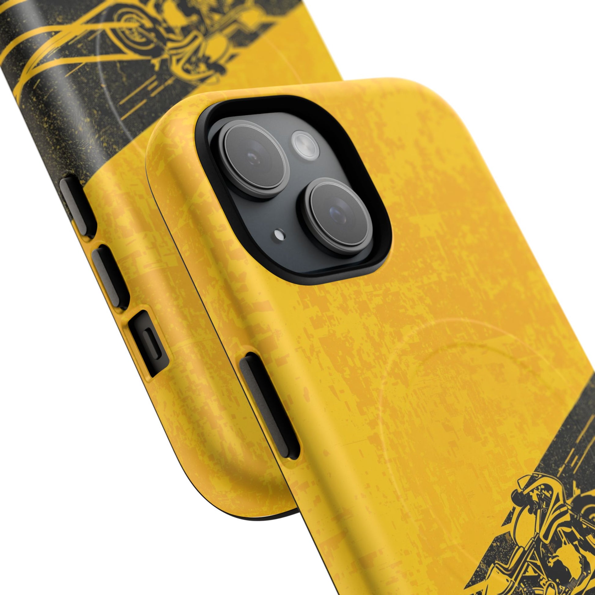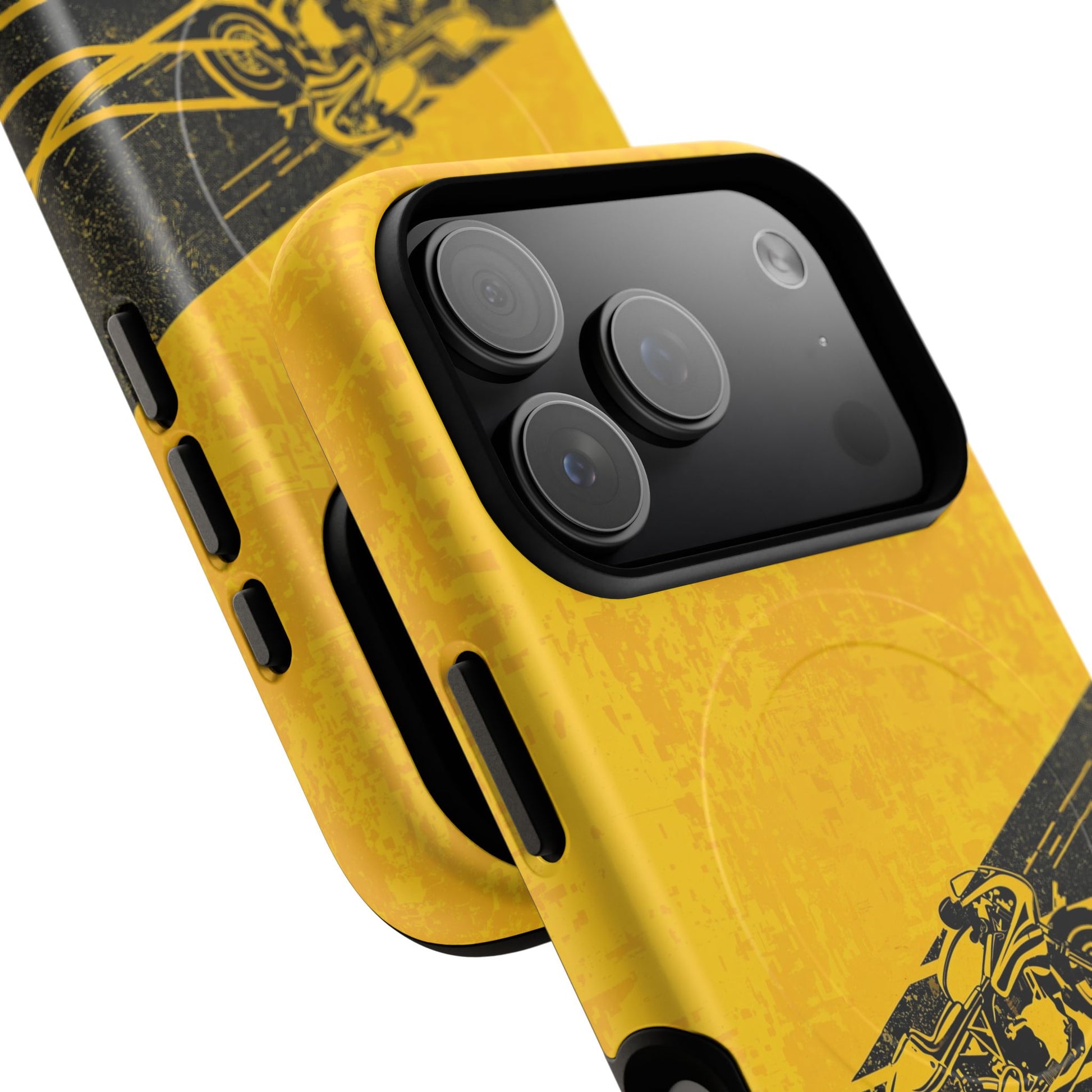 Add bold energy to your iPhone with our Motorbike Rider Matte iPhone Case, designed for those who live life in the fast lane. The striking yellow-and-black motorcycle artwork is printed with 3D wrap technology, delivering full ink density and vibrant detail across every edge. Built with durable, impact-resistant materials and a TPU silicone liner, this case provides excellent shock absorption while maintaining a sleek, premium feel in hand.
