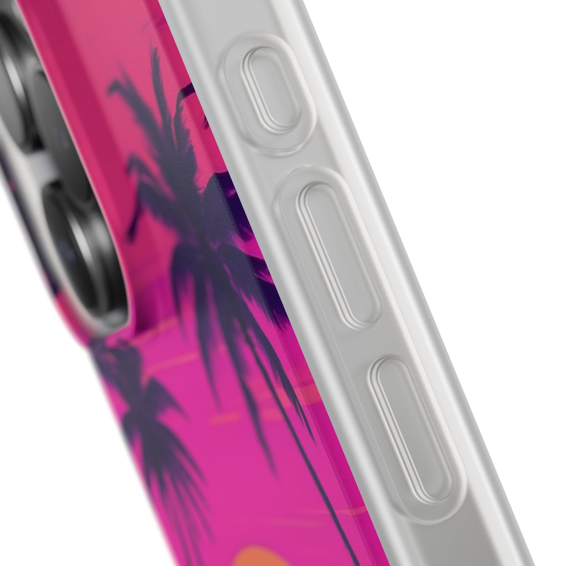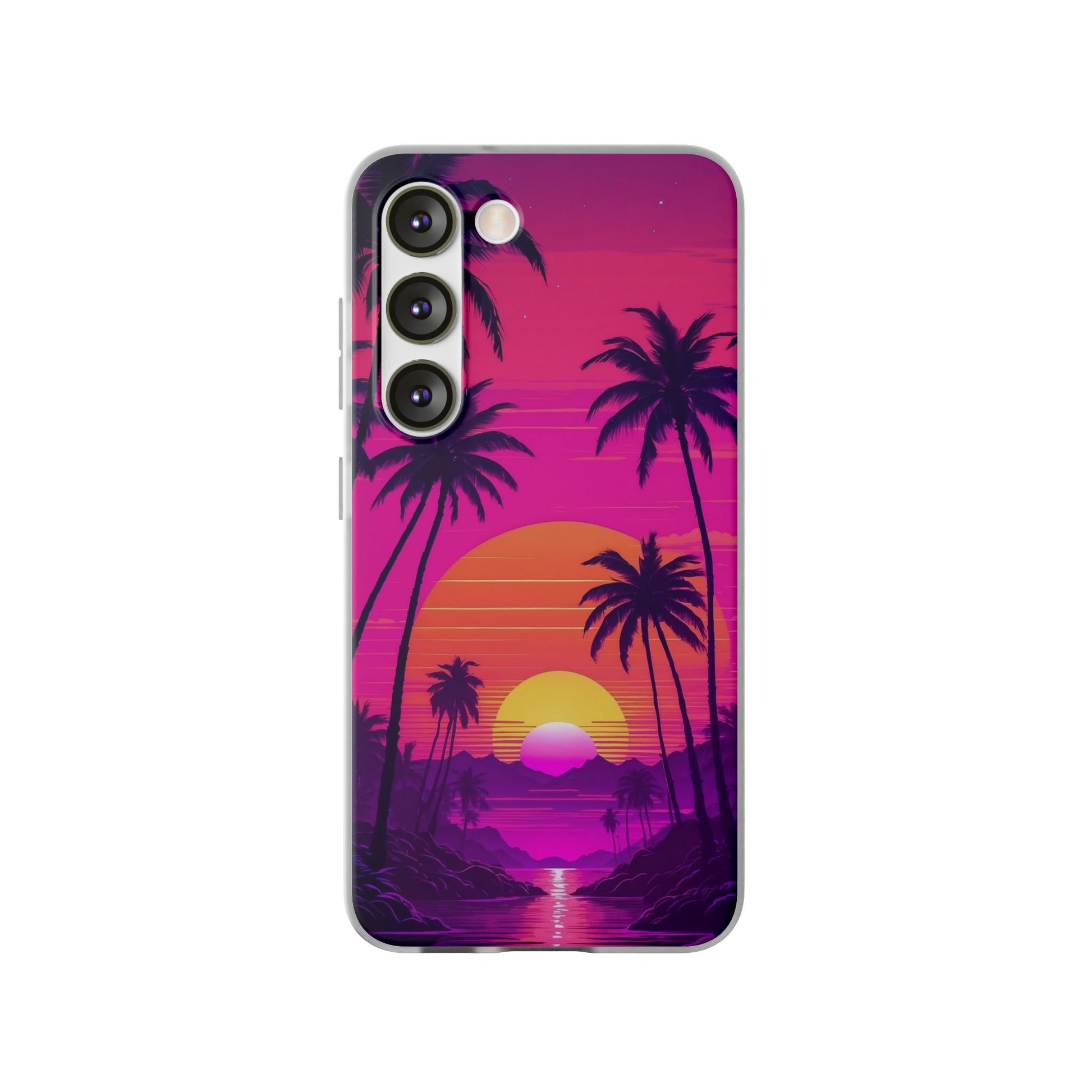 Turn up the nostalgia with our Neon Sunset & Palms phone case, a striking tribute to 80s synthwave style. Featuring a vivid neon sunset in pink, orange and purple gradients, silhouetted palm trees, this design channels vintage Miami nights and vaporwave dreams.