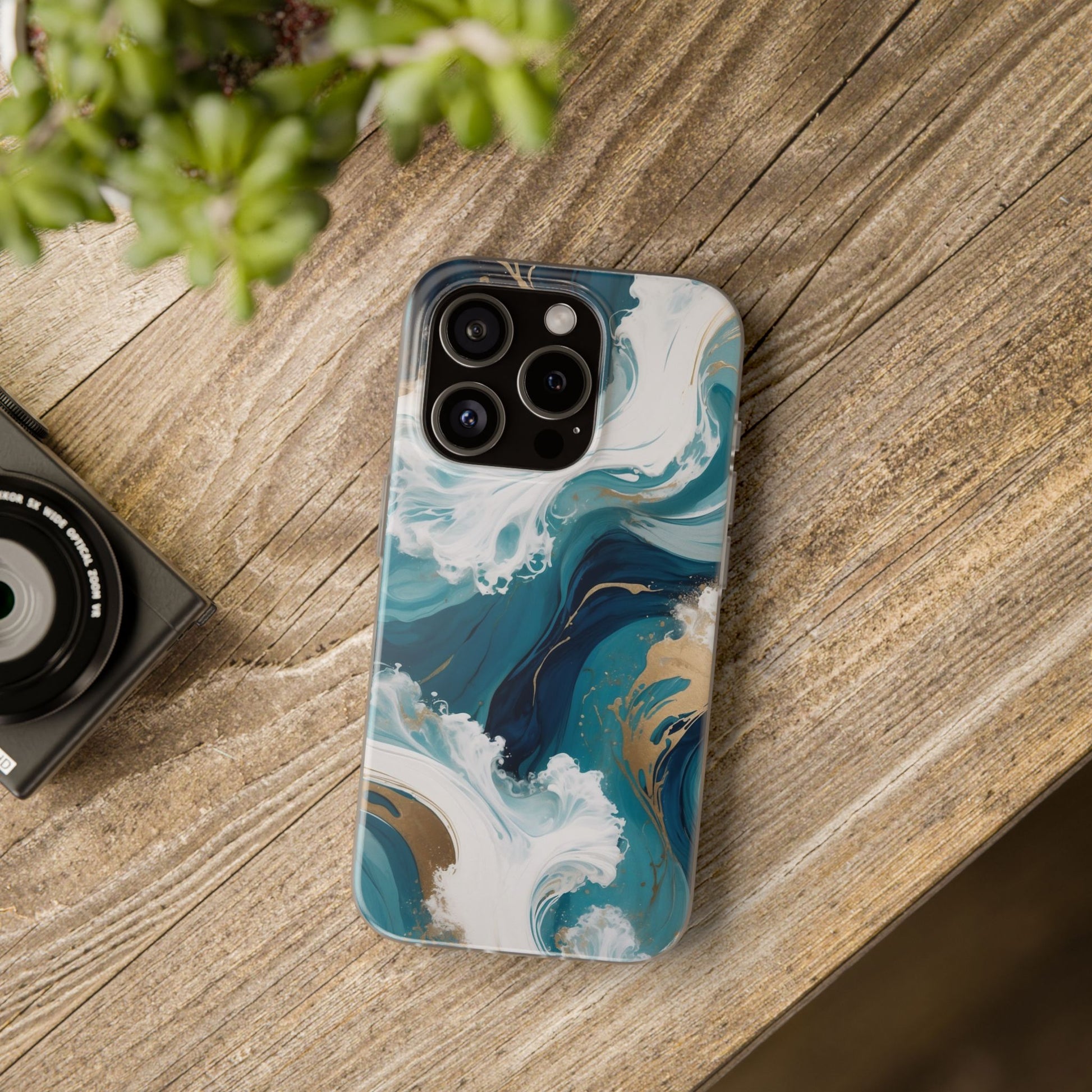 Dive into dynamic movement and refined artistry with the Ocean Luxe Marble phone case. This design features swirling oceanic blues, rich navy depths, and crisp white waves accented with shimmering strokes of gold, evoking the energy of crashing surf blended with the sophistication of abstract marble art.