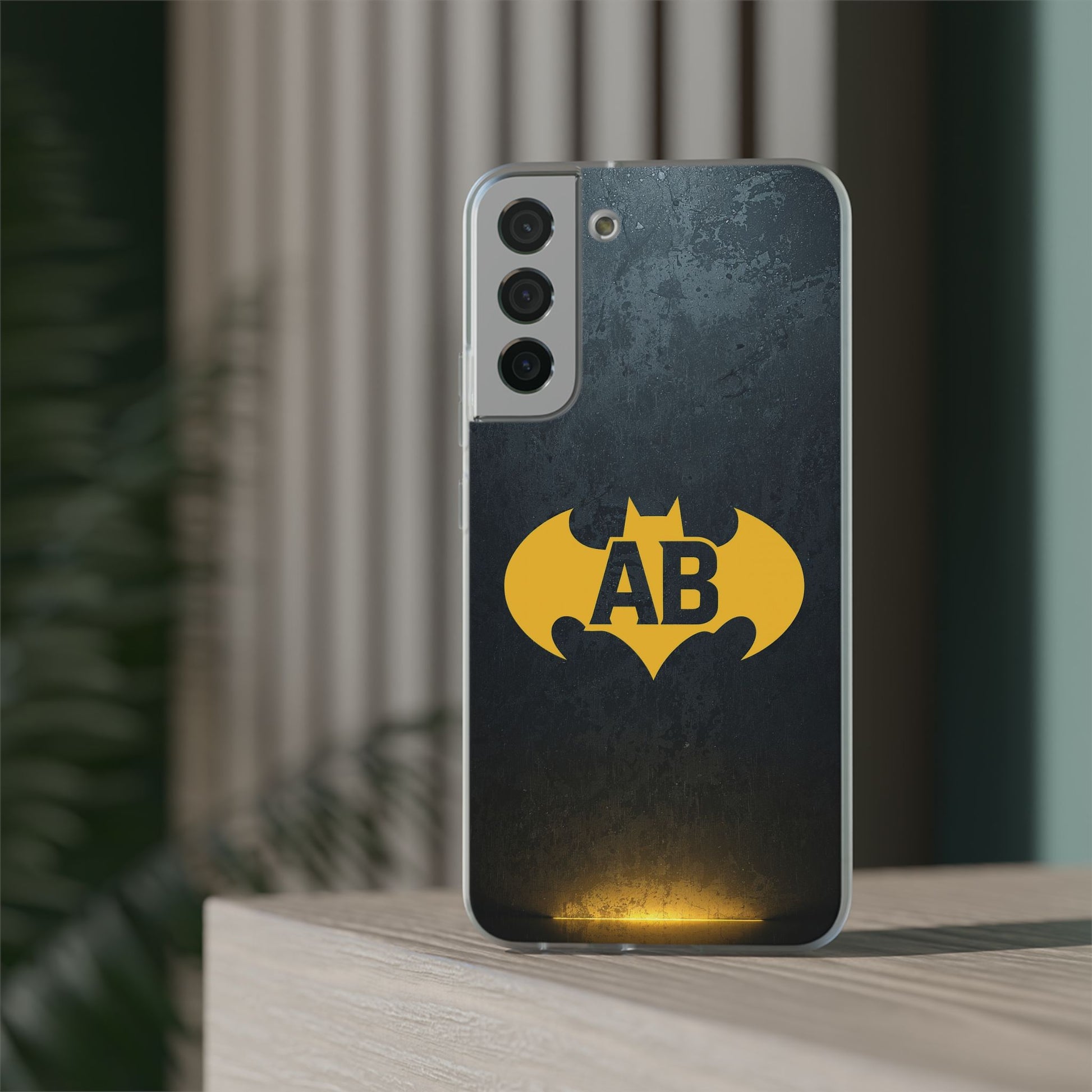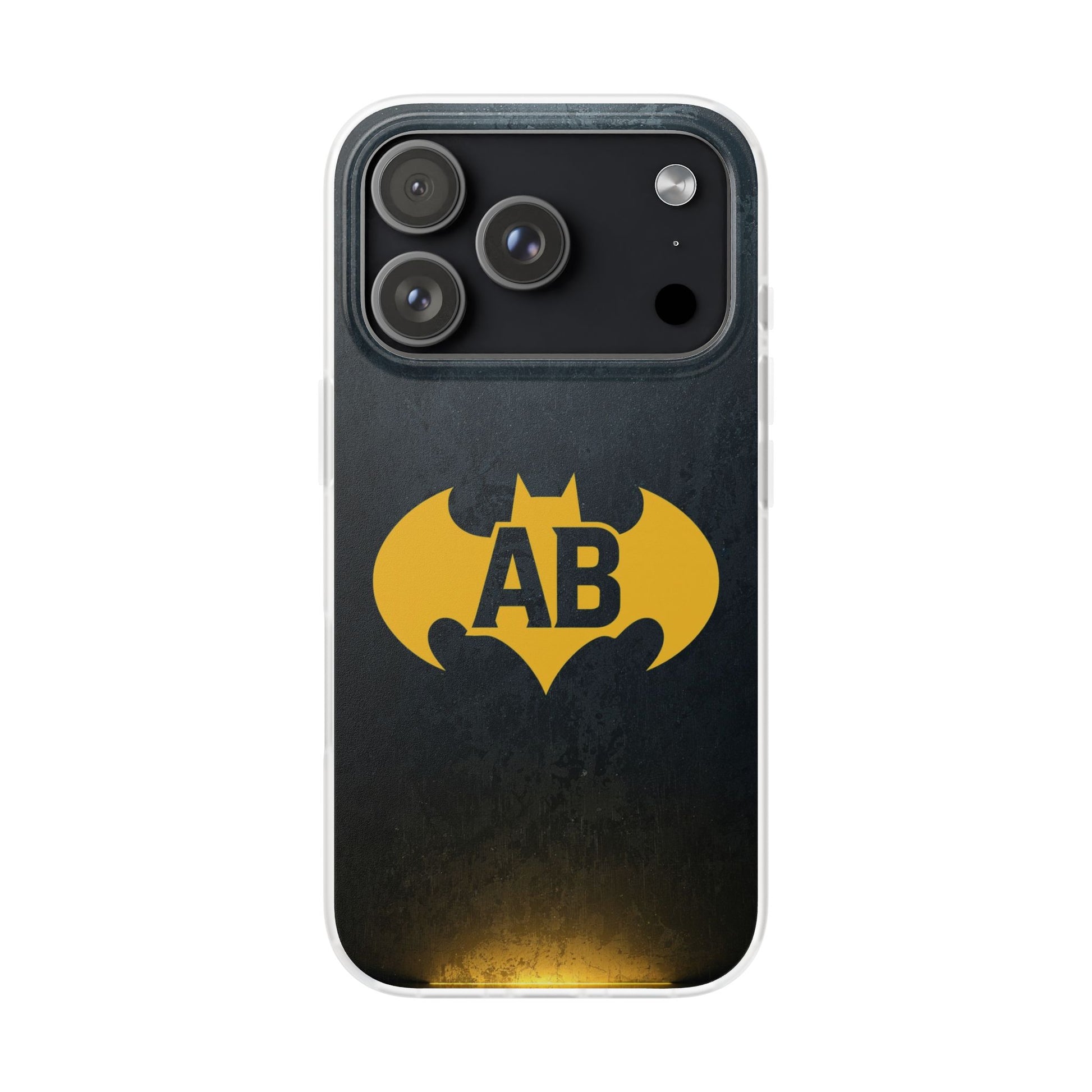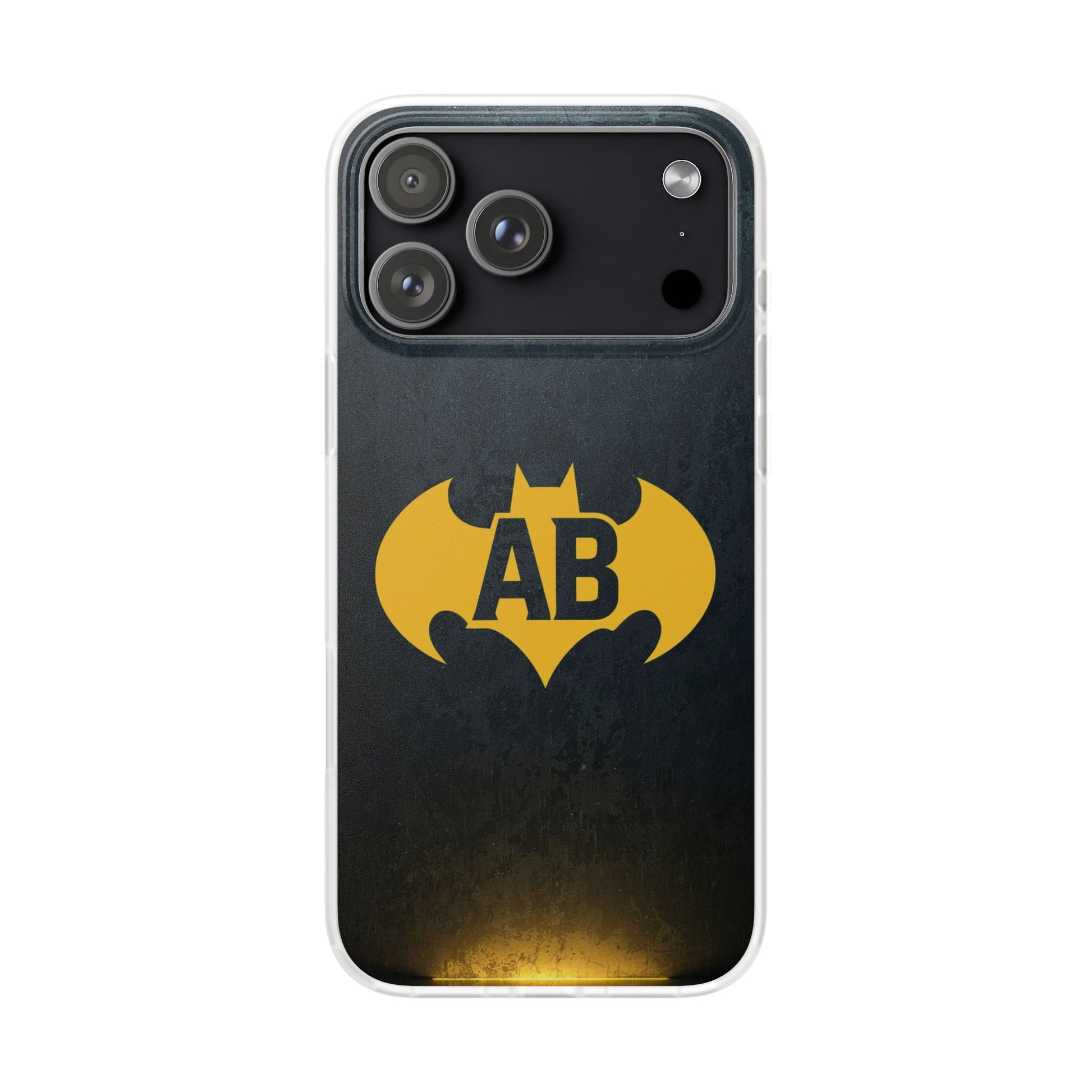 Featuring a bold black background with a striking yellow bat emblem, this case is a powerful symbol of strength and individuality. Add your initials to make it truly unique – the perfect accessory for anyone who wants their phone to stand out in superhero style.