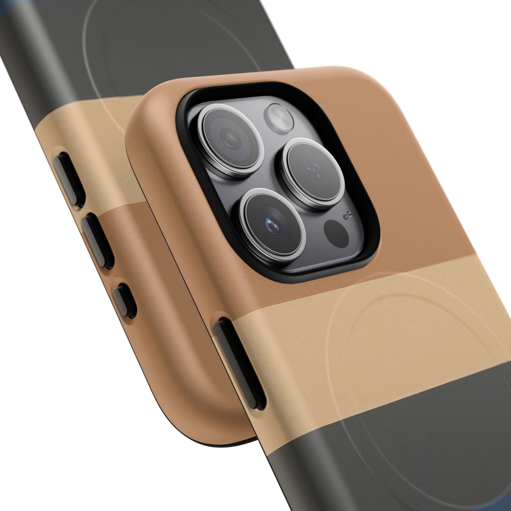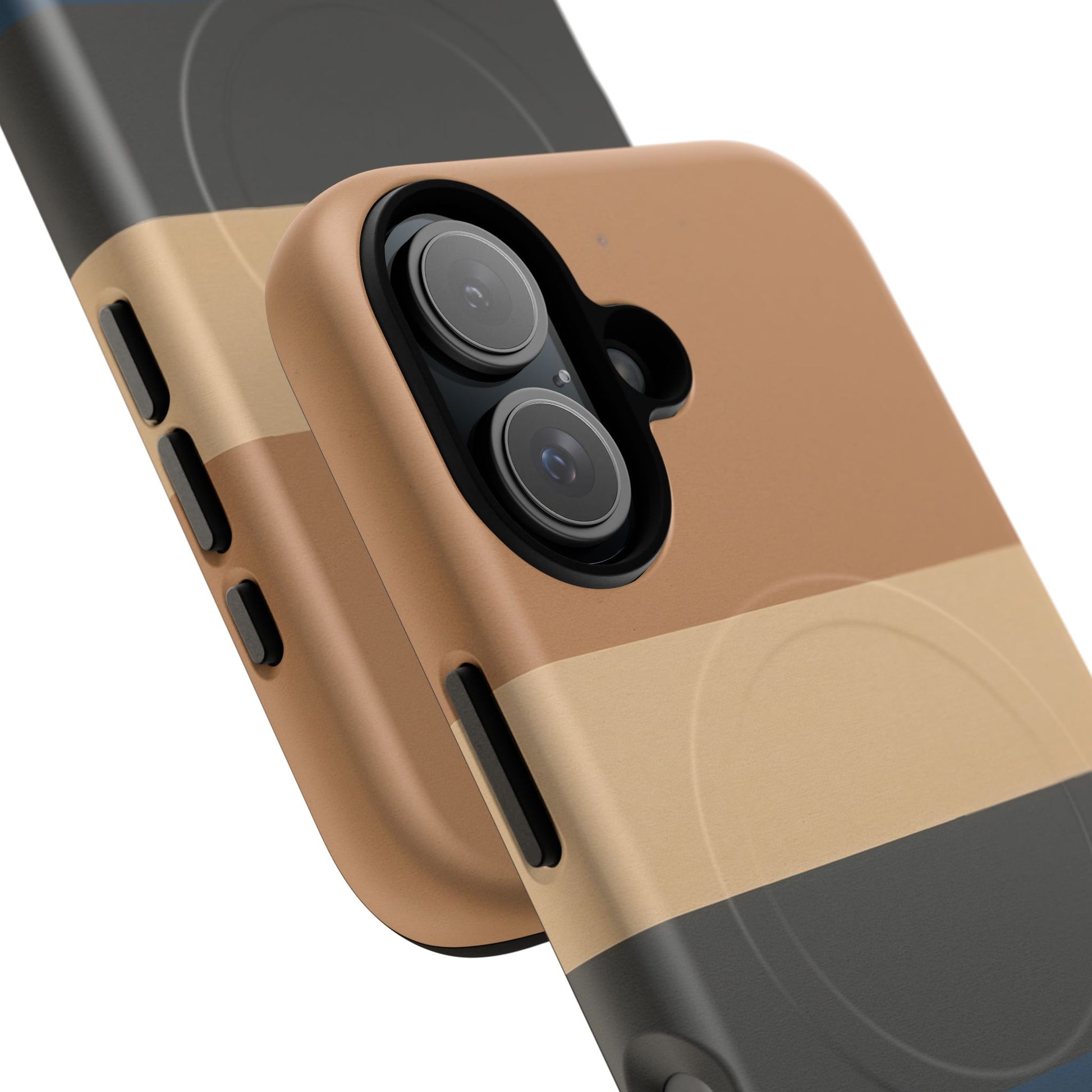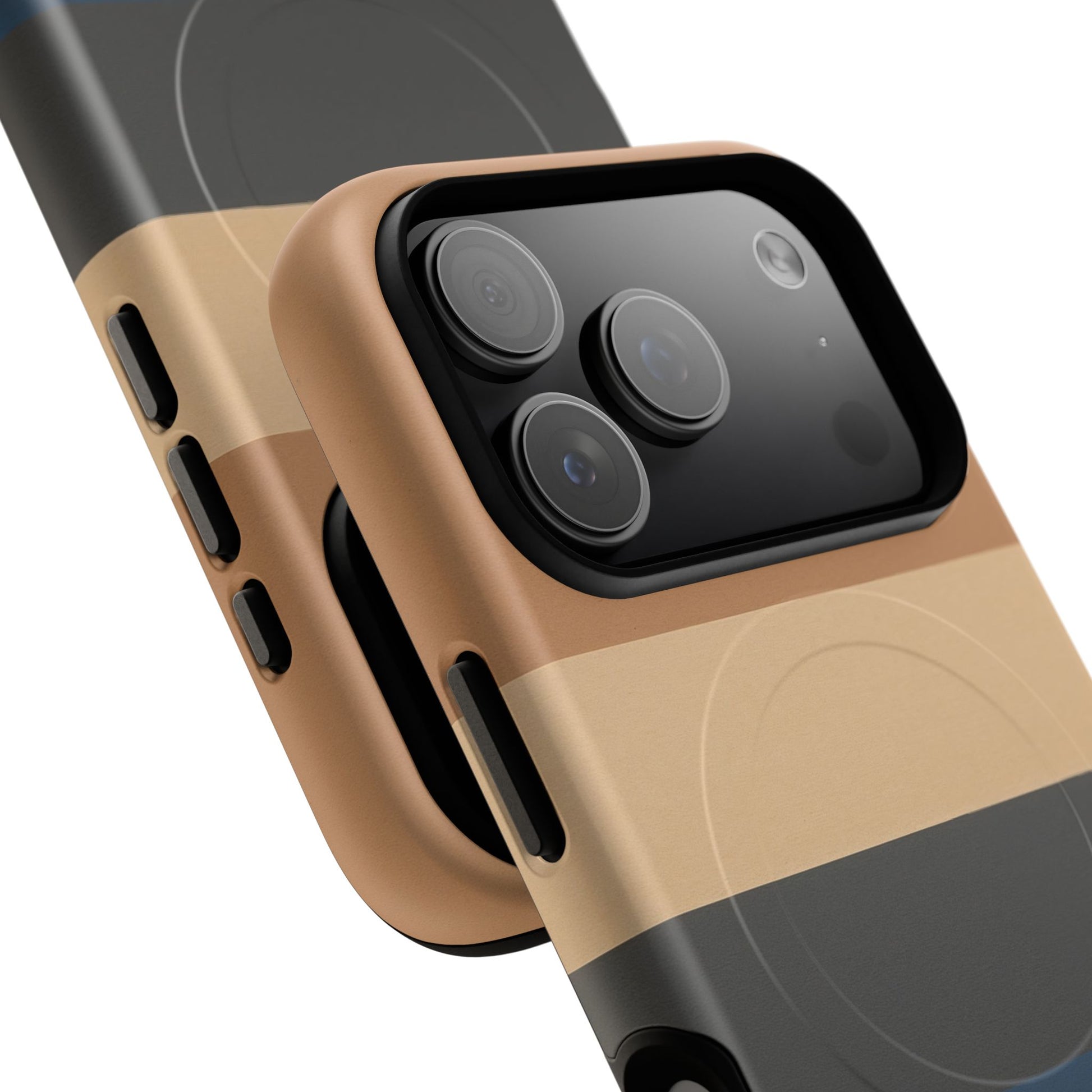 This modern iPhone MagSafe-compatible tough case featuring the Retro Marina colourway - a refined blend of warm sand, cool slate grey, and deep ocean blue. Built for everyday durability, this dual-layer design combines clean minimalist styling with dependable all-round protection.
