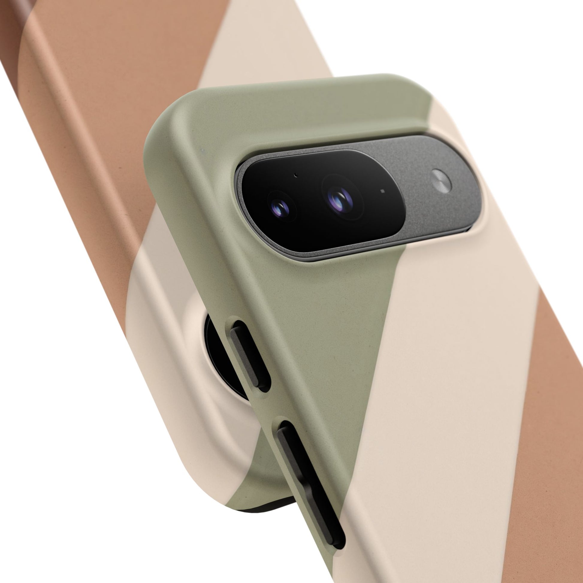 Give your Google Pixel a warm, earthy aesthetic with the Sage Trail case - a diagonal blend of sage green, soft cream, tan and chestnut brown. This nature-inspired palette brings a calm, modern look to your device while ensuring reliable everyday protection.