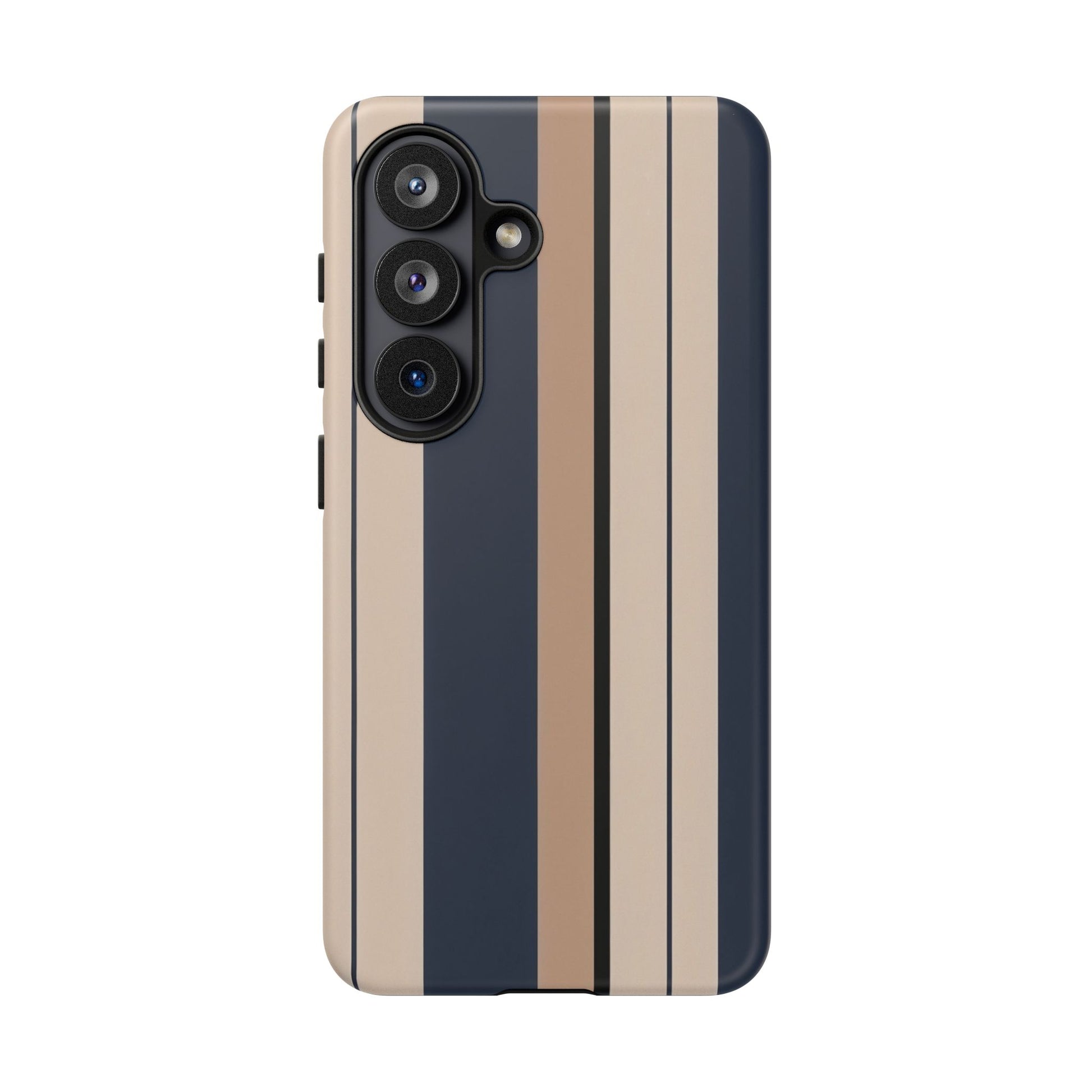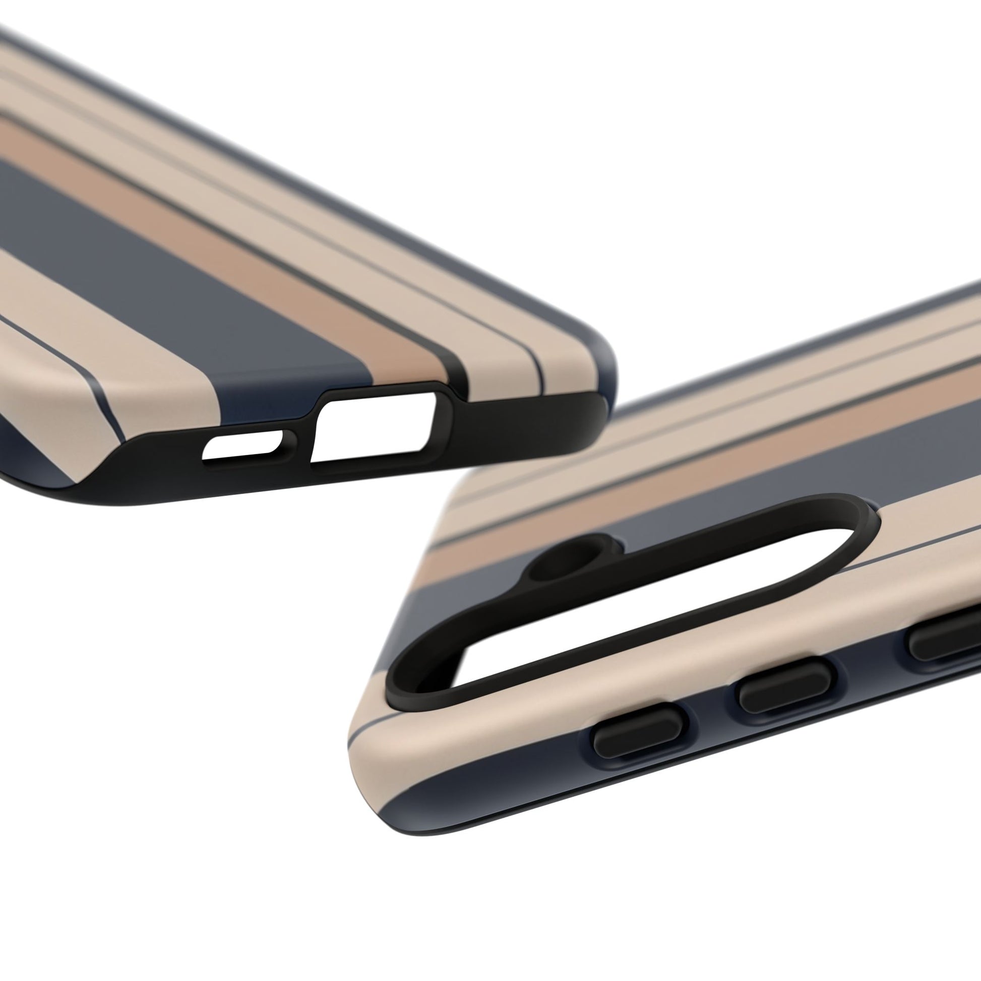 Samsung Galaxy Neutral Stripe Phone Case - Beige Navy Matte Tough Protective Cover