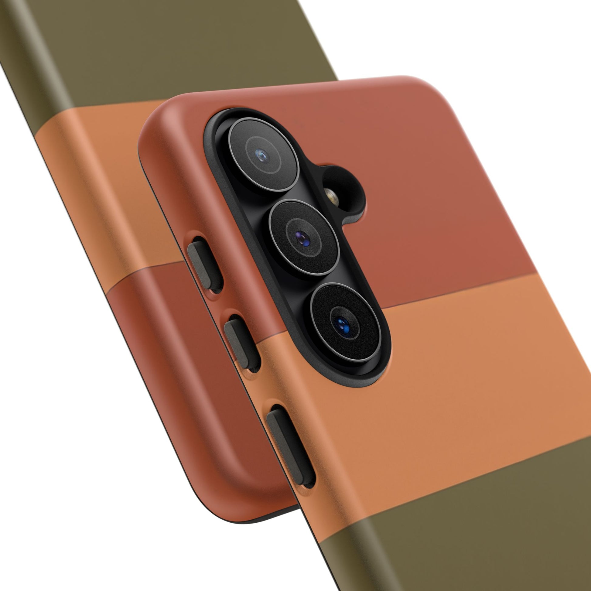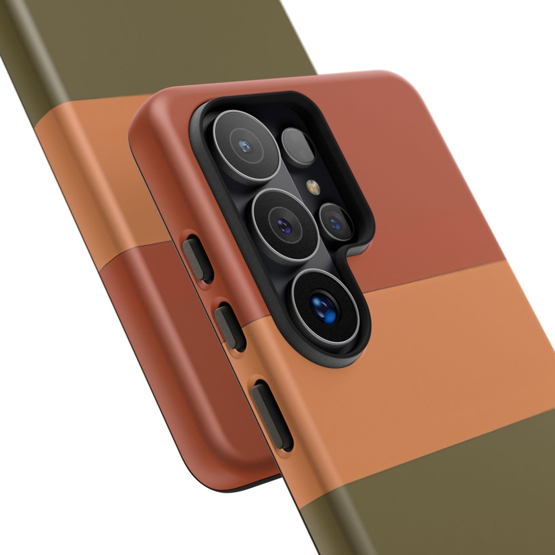 This Samsung Galaxy personalised name phone case features a warm colour block design with earthy tones including burnt orange, soft tan, olive green and cream, finished with your custom name for a unique and personal touch. The clean layout creates a modern yet relaxed aesthetic inspired by natural colour palettes.